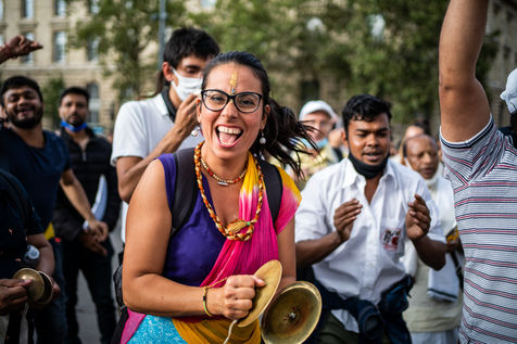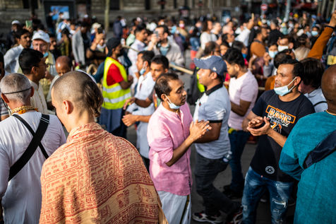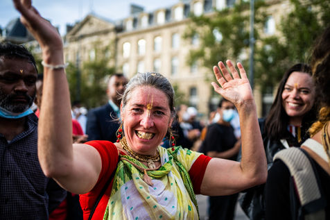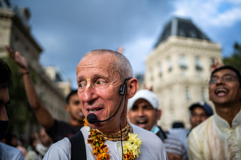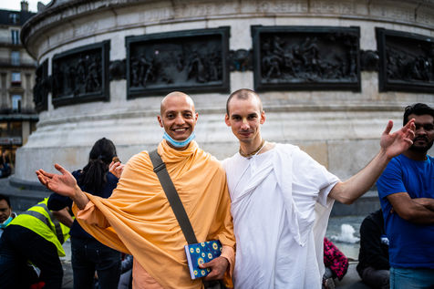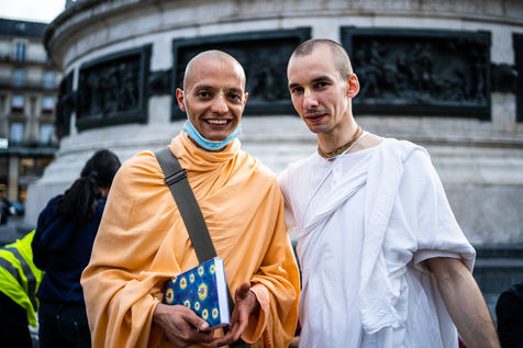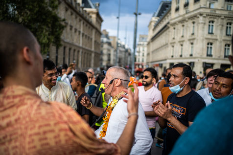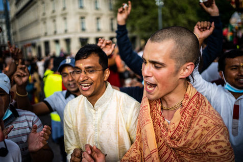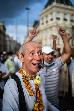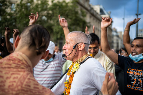 Festival Ratha-Yatra, également connu sous le nom de procession des chars à Paris, place de la République, 28 août 2021.