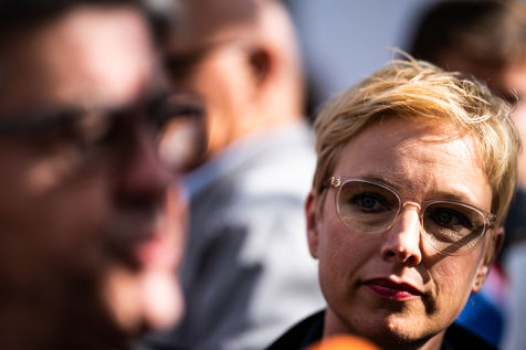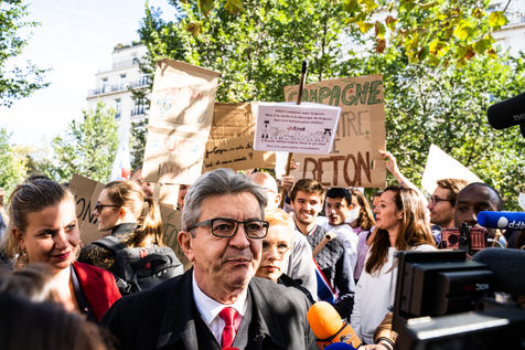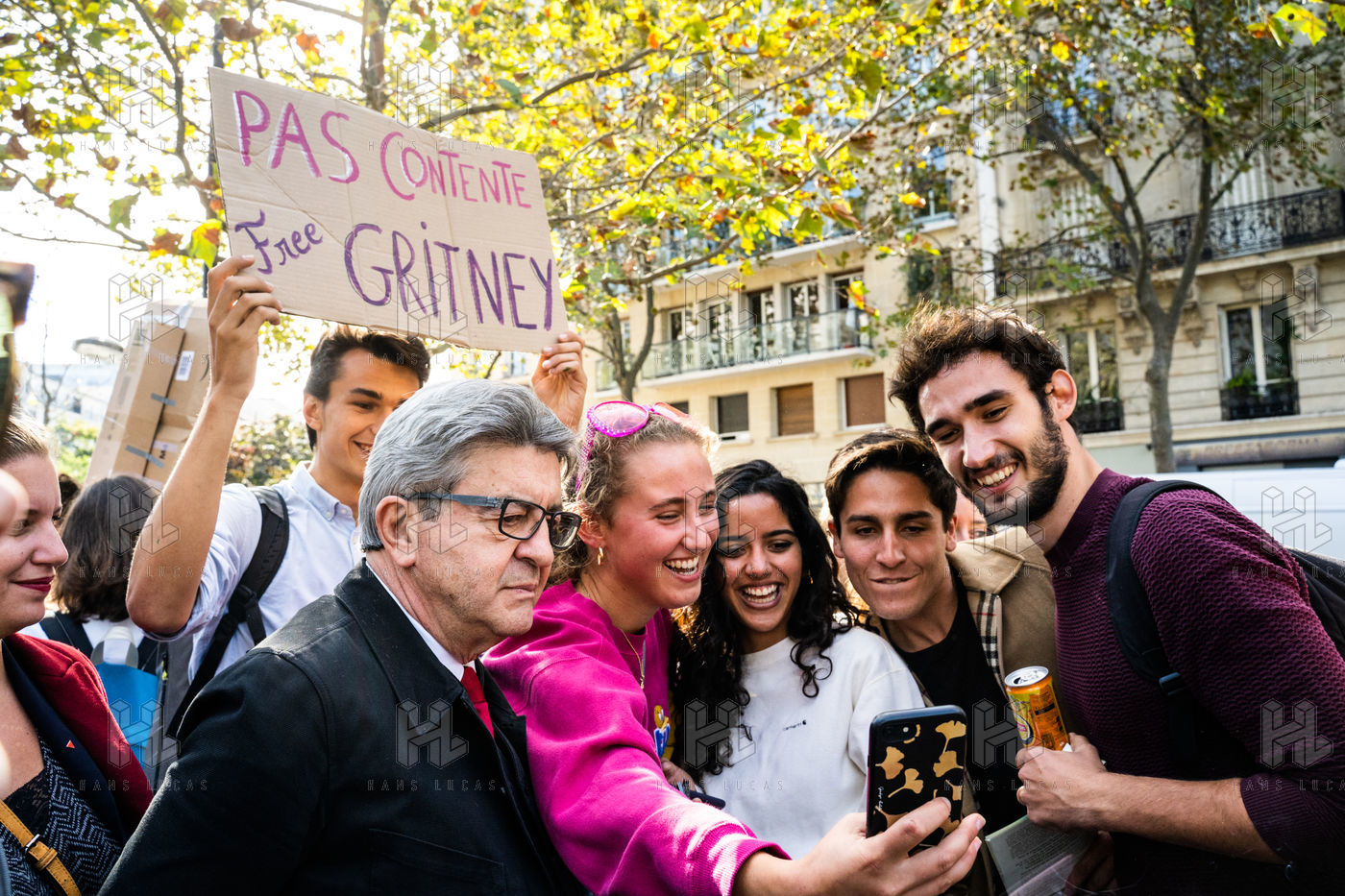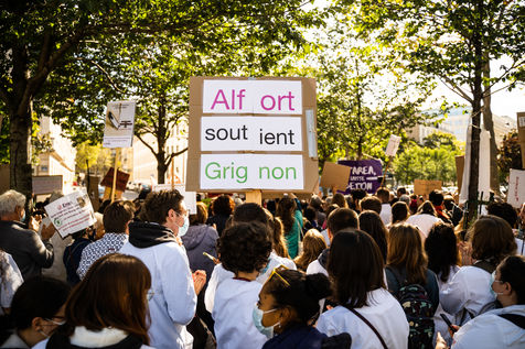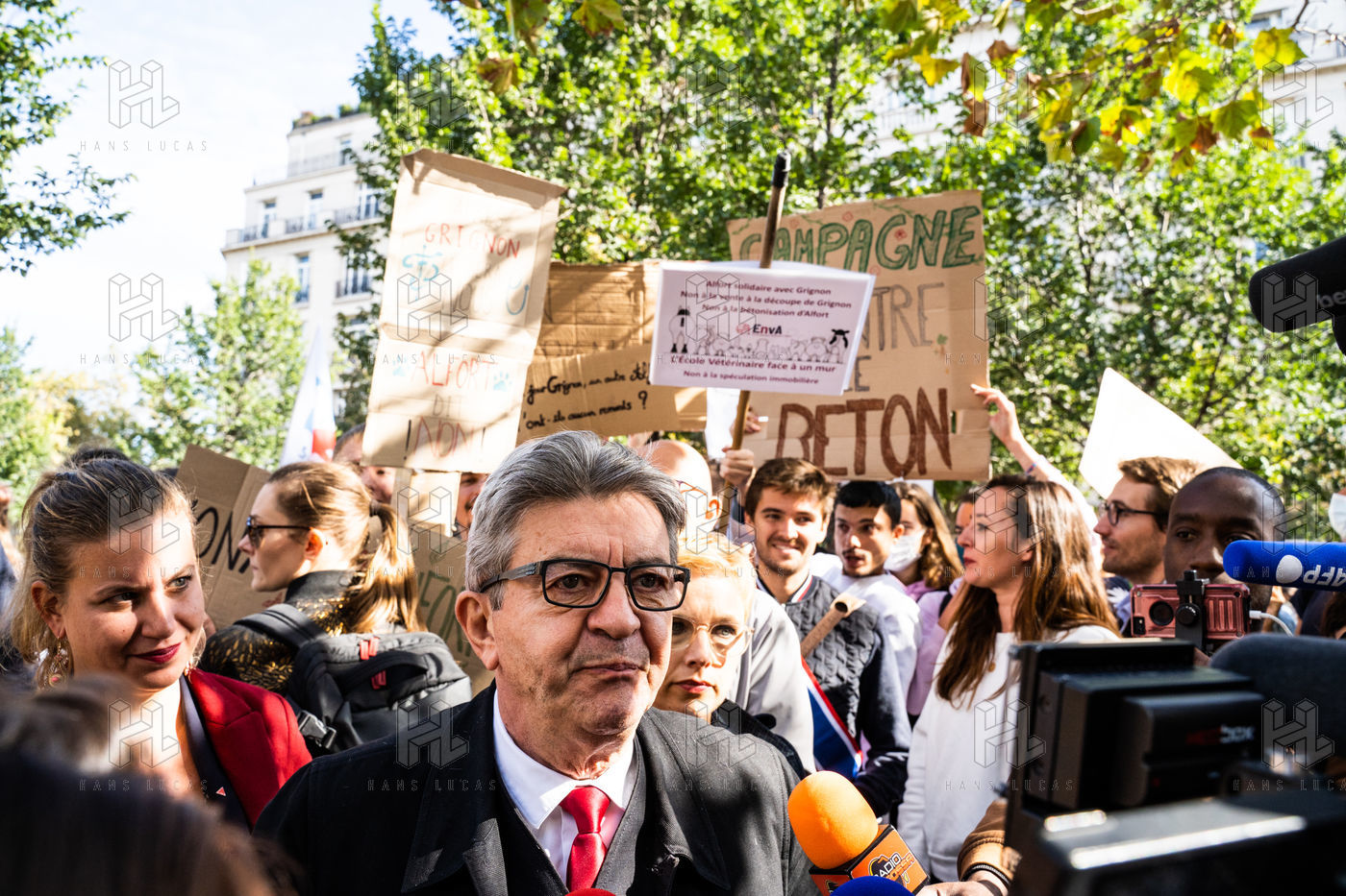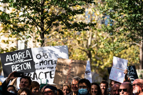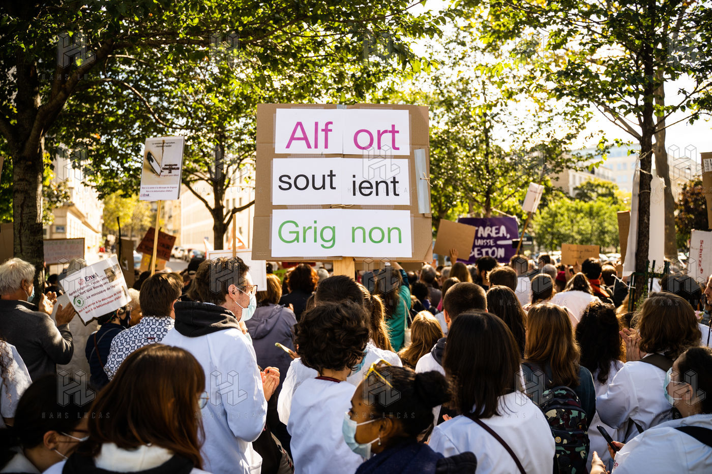 Demonstration, organized by the collective for the future of the Grignon site, unions and students, against the sale of the Grignon estate (Yvelines) to the property developer Altarea Cogedim, place denys cochin, in the 7th arrondissement of Paris.