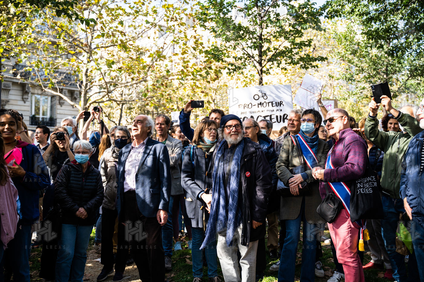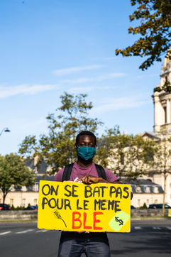 Manifestation, organisée par le collectif pour l'avenir du site de Grignon, des syndicats et des étudiants, contre la vente du domaine de Grignon (Yvelines) au promoteur immobilier Altarea Cogedim, place denys cochin, dans le 7e arrondissement de Paris.