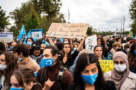 March against the Uyghur genocide, to obtain the recognition of a genocide and to alert on the excesses of the Chinese dictatorship, place de la Bastille, Paris 02 October 2021.