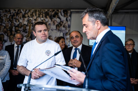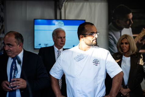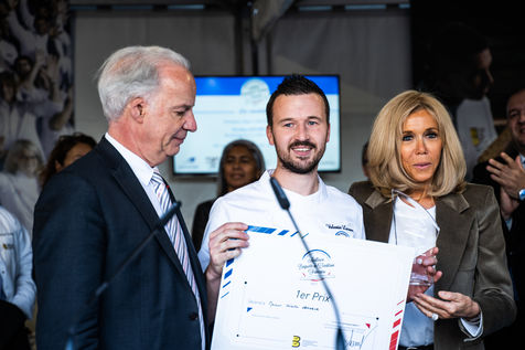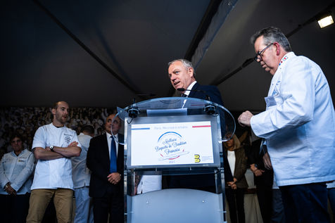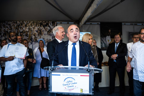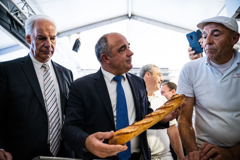 7e édition du concours national de la meilleure baguette de tradition française, lauréat organisé par la confédération nationale de la boulangerie-pâtisserie française, sur le parvis de la cathédrale Notre-Dame de Paris.