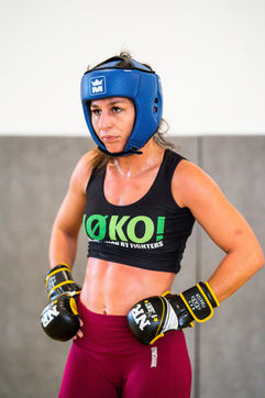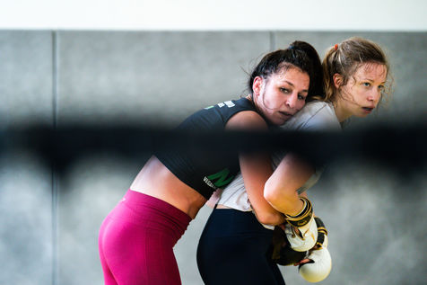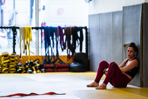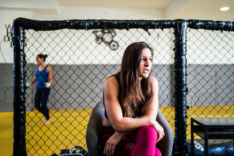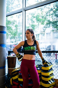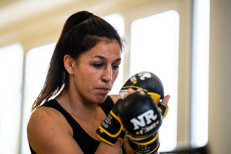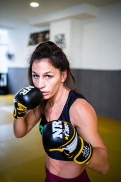 Portrait de Lucie Bertaud, boxeuse amateur française, combattante MMA, sport d'arts martiaux mixtes, qui s'entraîne à la salle NR Fight à Paris pour son combat à la deuxième édition de l'hexagone MMA qui aura lieu le 30 octobre au Zénith de Paris.