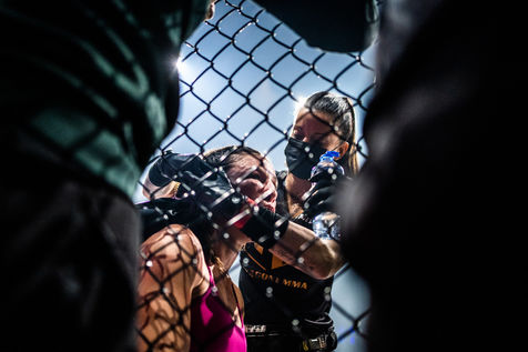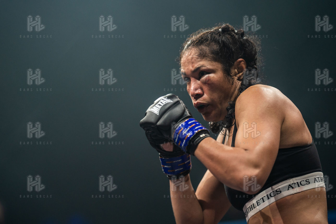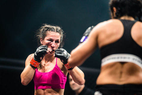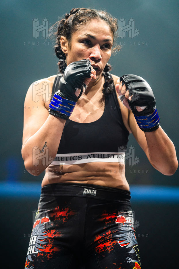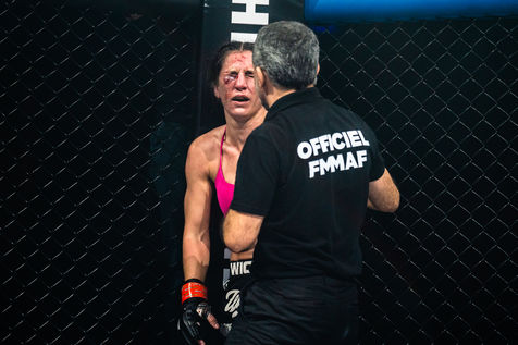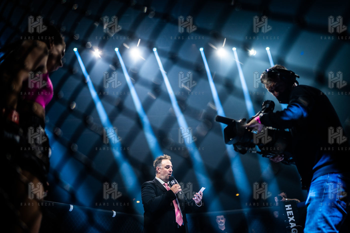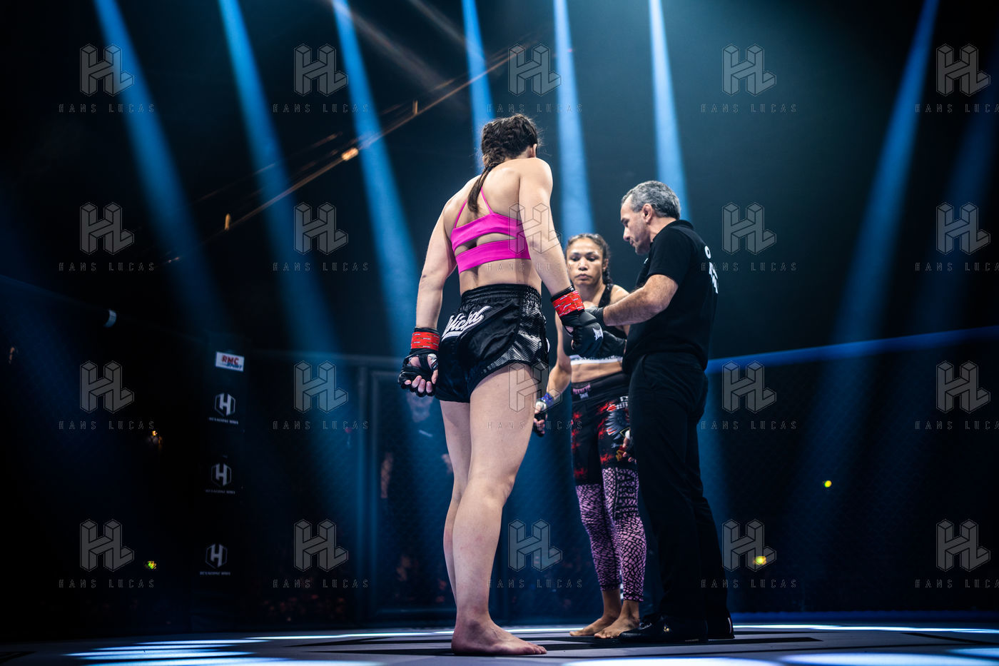 Fight between Lucie Bertaud, French professional practitioner of mixed martial arts and finalist of Koh-Lanta, and Karla Benitez, nicknamed the warrior of god from Venezuela and based in Spain, catchweight 57 kg on the occasion of the second edition of the hexagone MMA at the Zenith of Paris