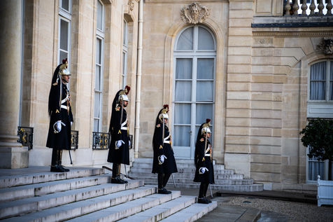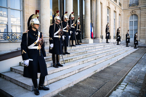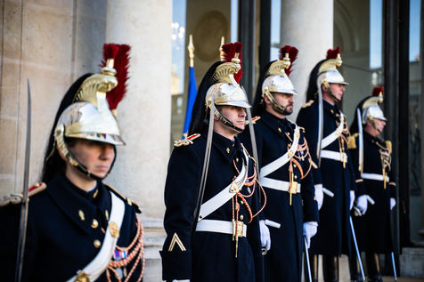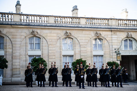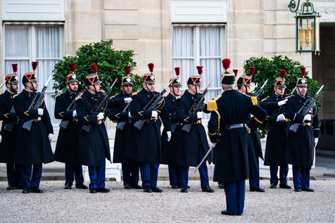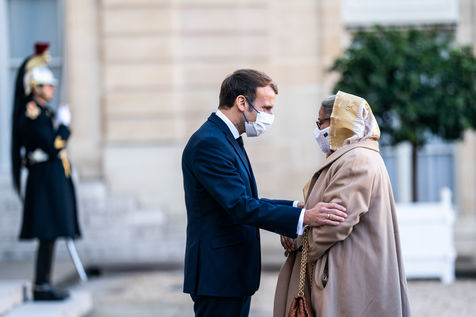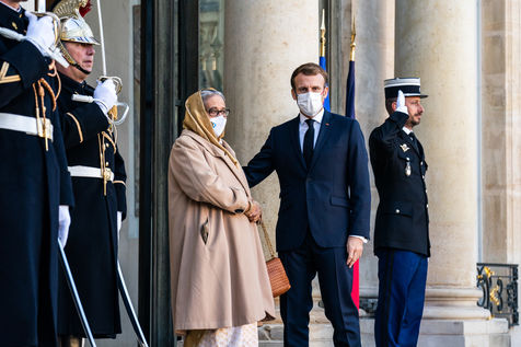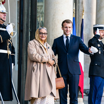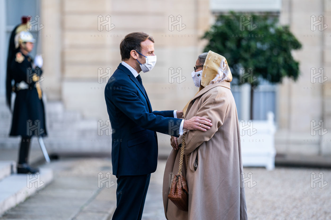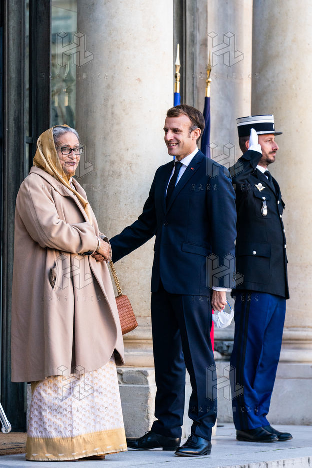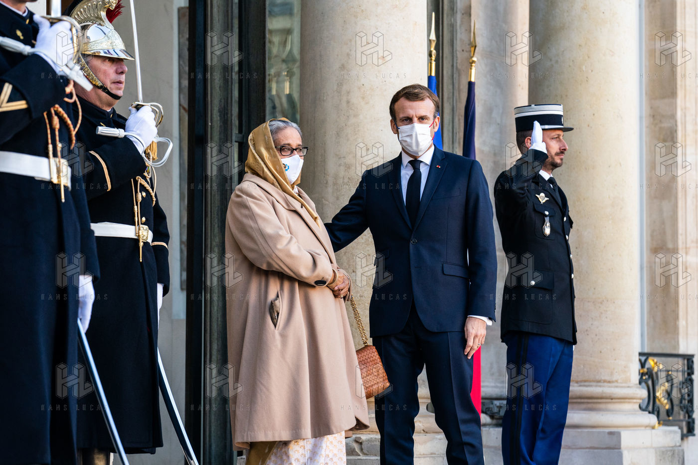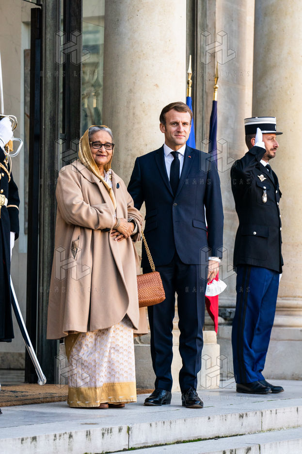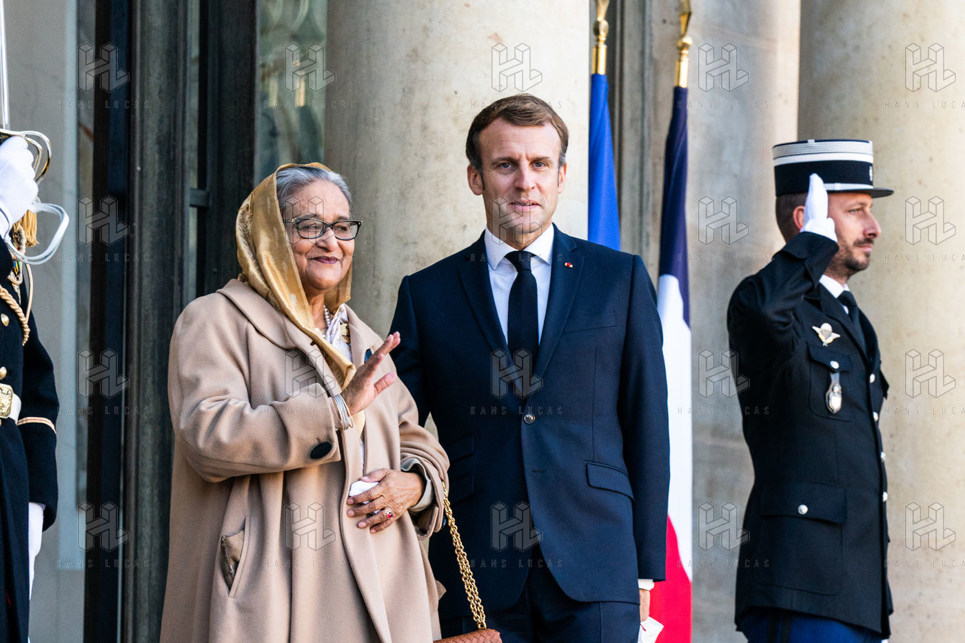 The President of the French Republic receives the prime minister of the People's Republic of Bangladesh, for a working lunch at the Elysee Palace.
