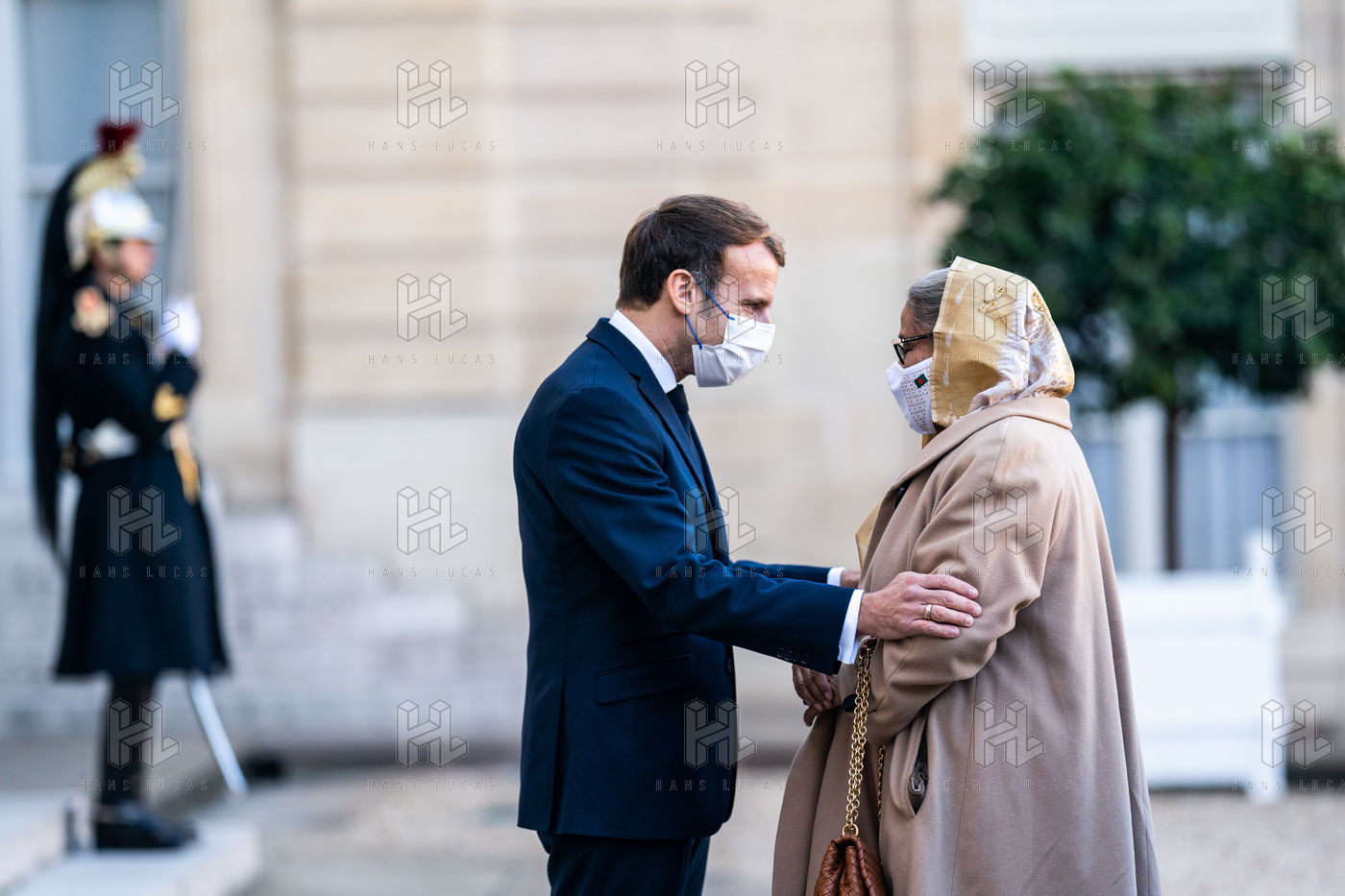 Le président de la République francaise recoit la première ministre de la république populaire du Bangladesh, pour un déjeuner de travail au Palais de l?Elysée.