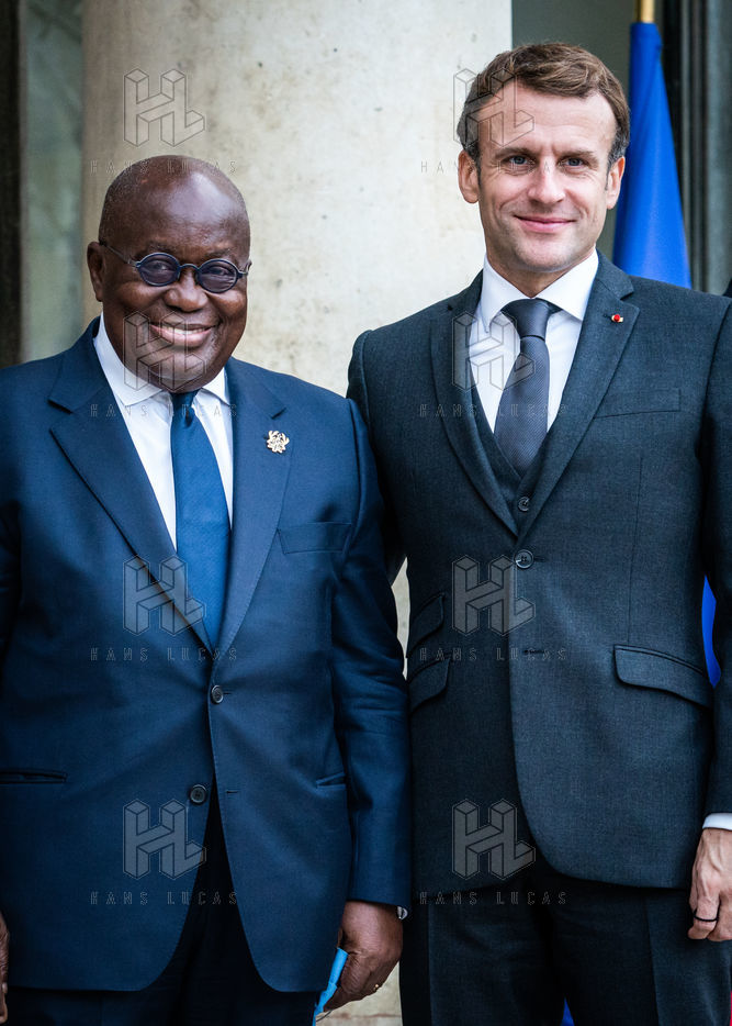 The President of the Republic receives the President of the Republic of Ghana for a meeting at the Elysée Palace. This meeting, devoted to the situation in the Sahel, is part of the rotating presidency of ECOWAS that Ghana currently holds.