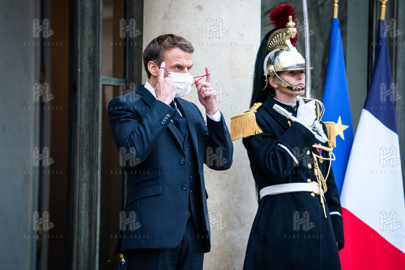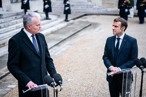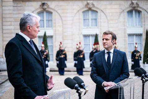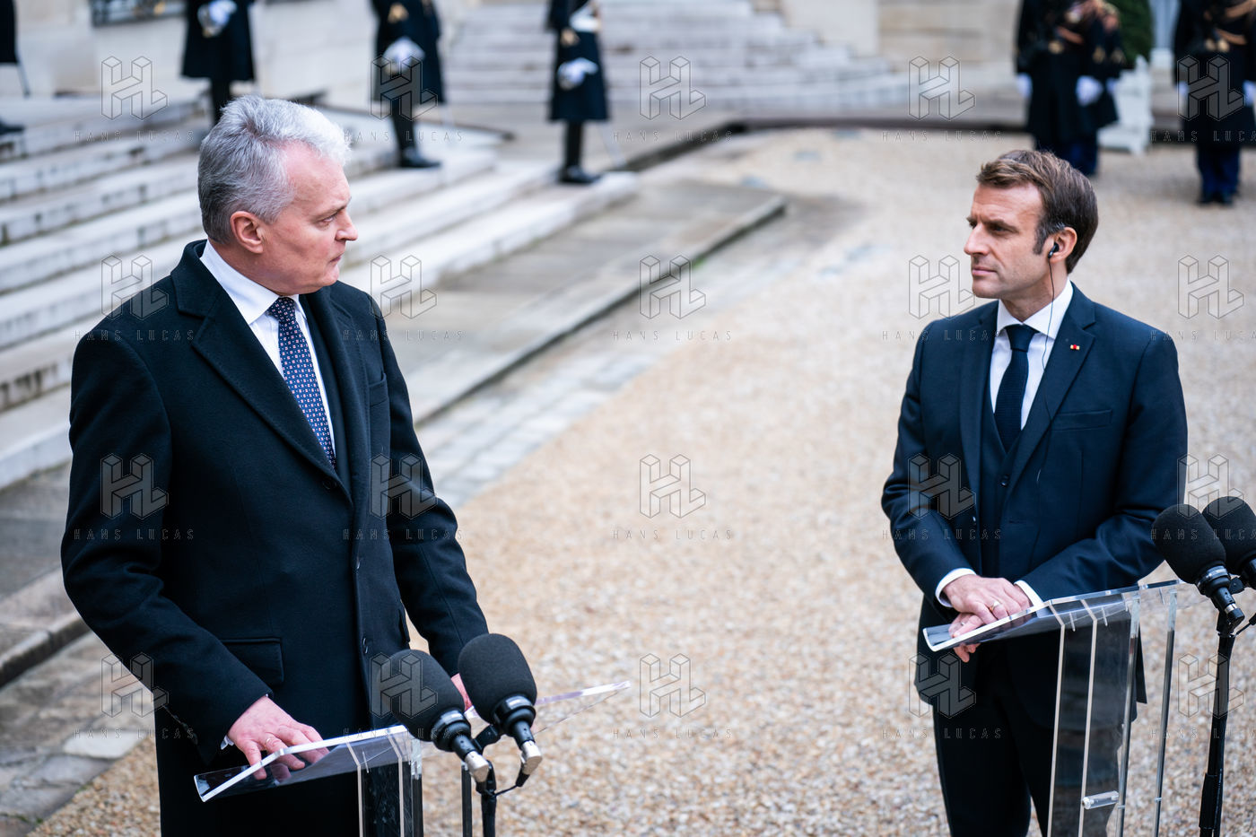 Entretien entre Emmanuel Macron, president de la republique francaise, et Gitanas Nauseda, président de la république de Lituanie, pour un déjeuner de travail au Palais de l'Elysée.