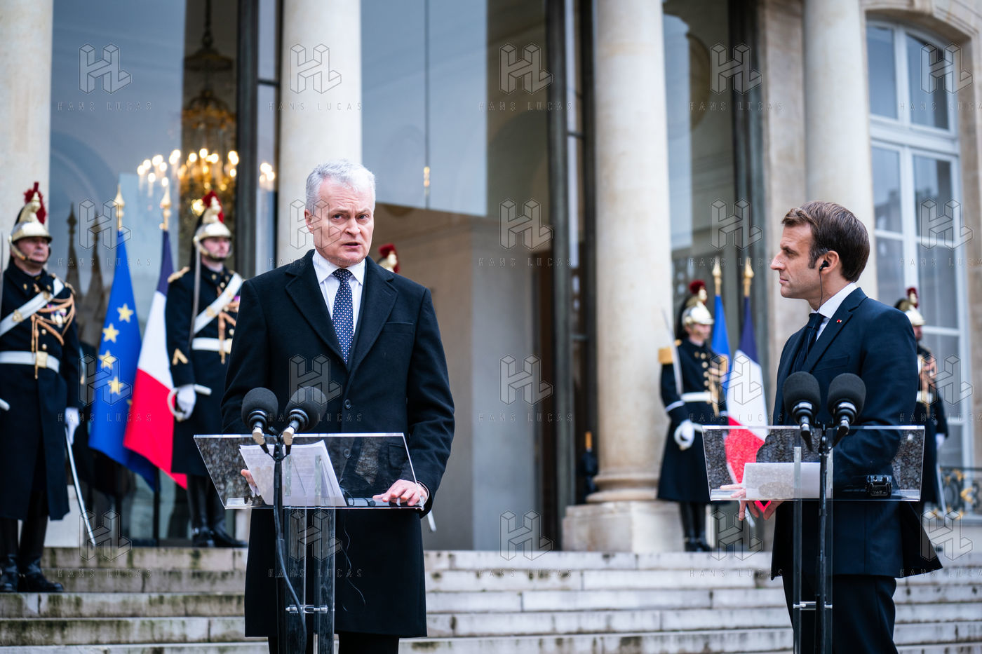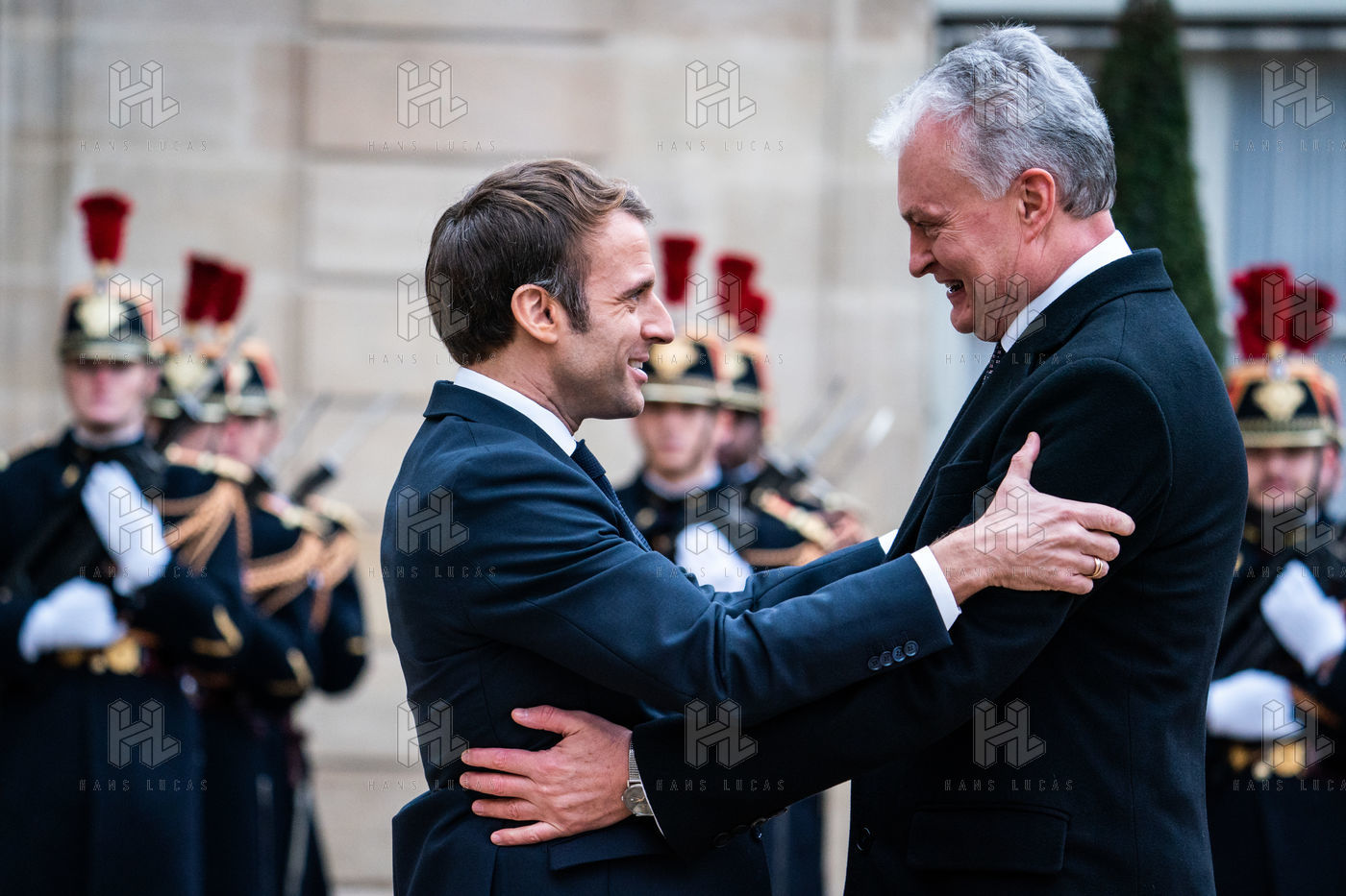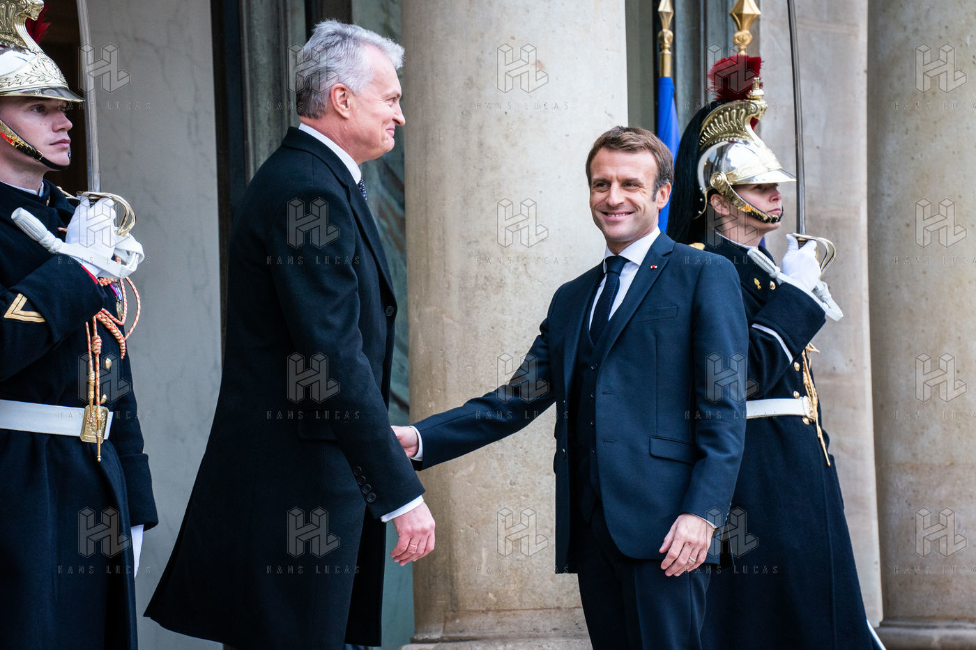 Meeting between Emmanuel Macron, President of the French republic, and Gitanas Nauseda, President of the Republic of Lithuania, for a working lunch at the Elysee Palace.