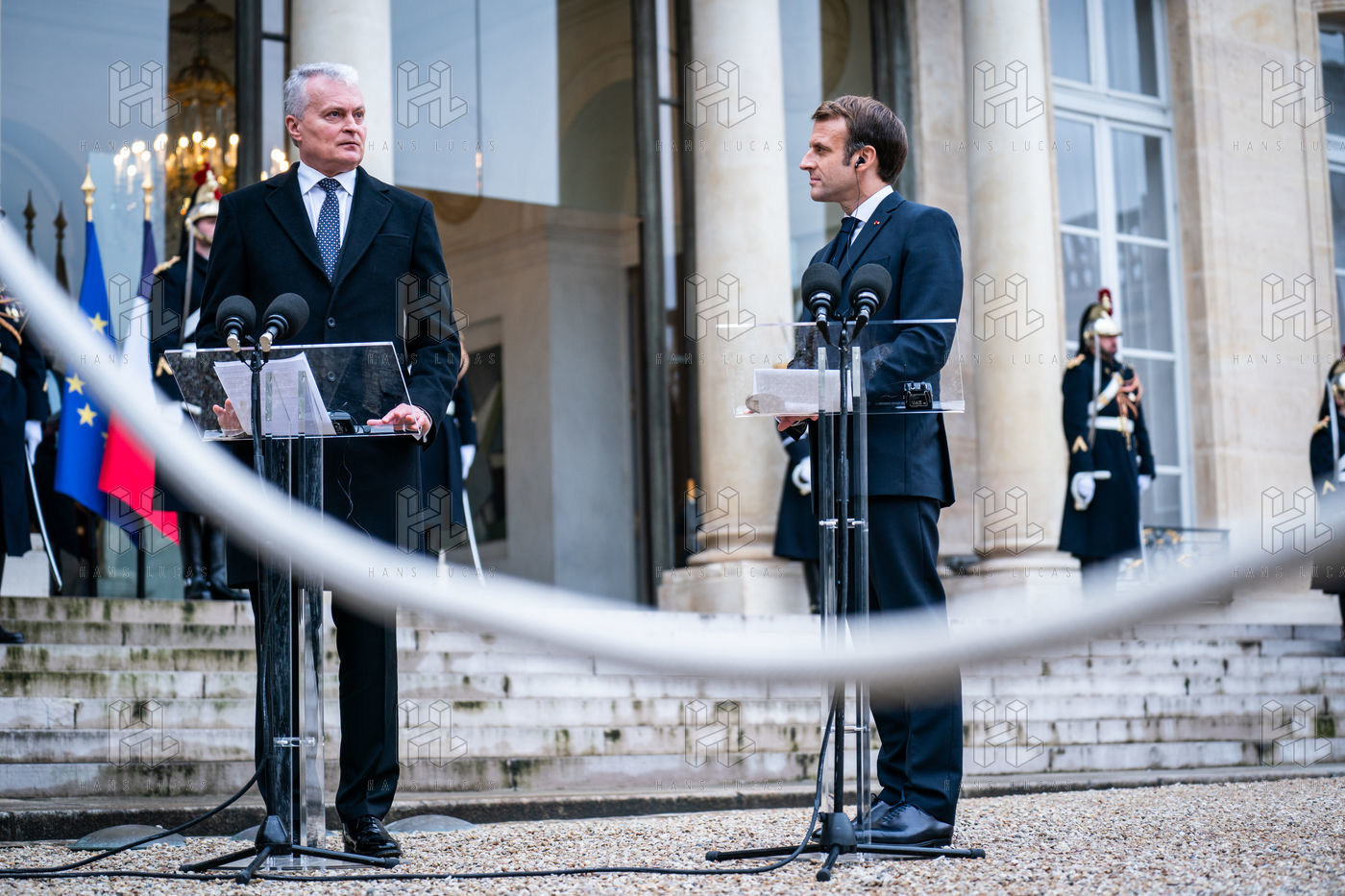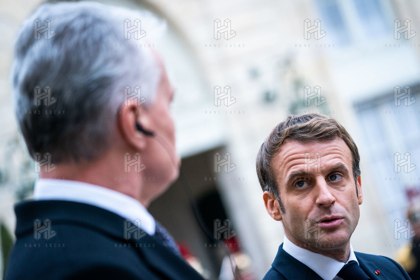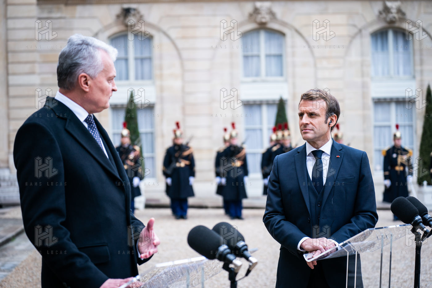 Meeting between Emmanuel Macron, President of the French republic, and Gitanas Nauseda, President of the Republic of Lithuania, for a working lunch at the Elysee Palace.