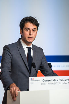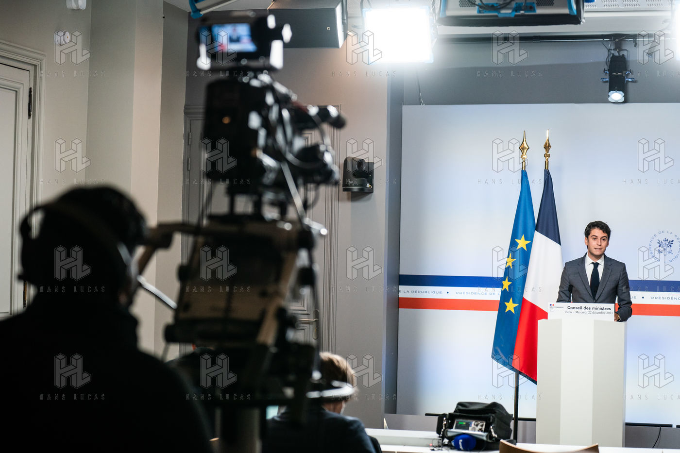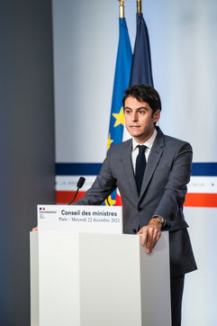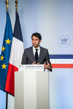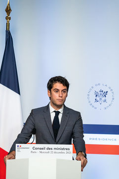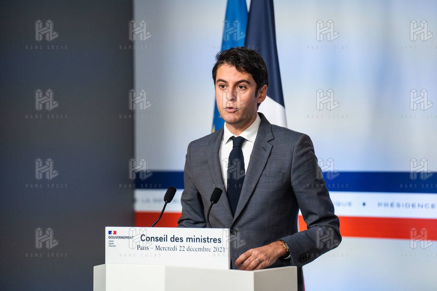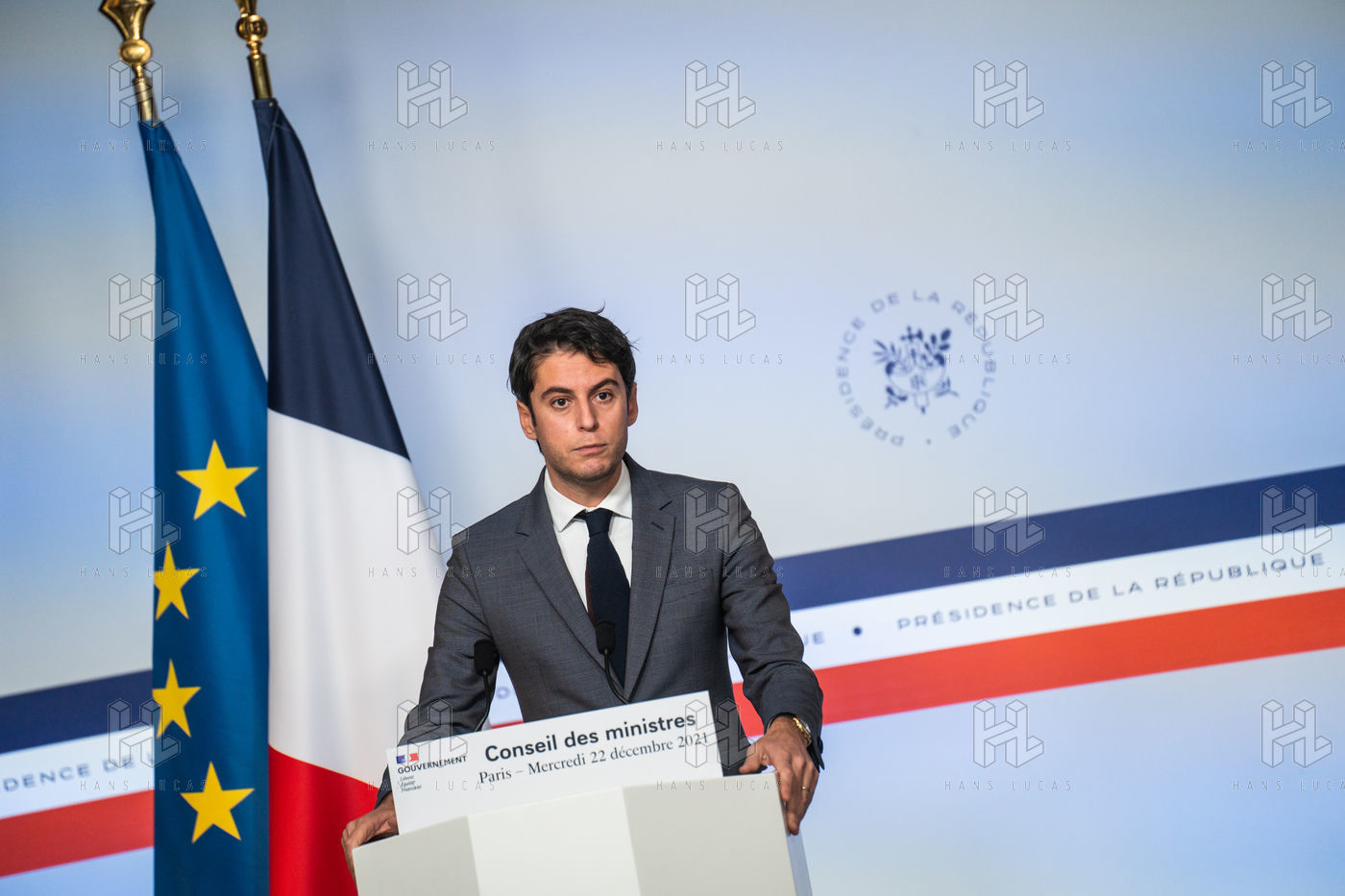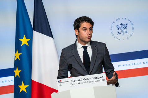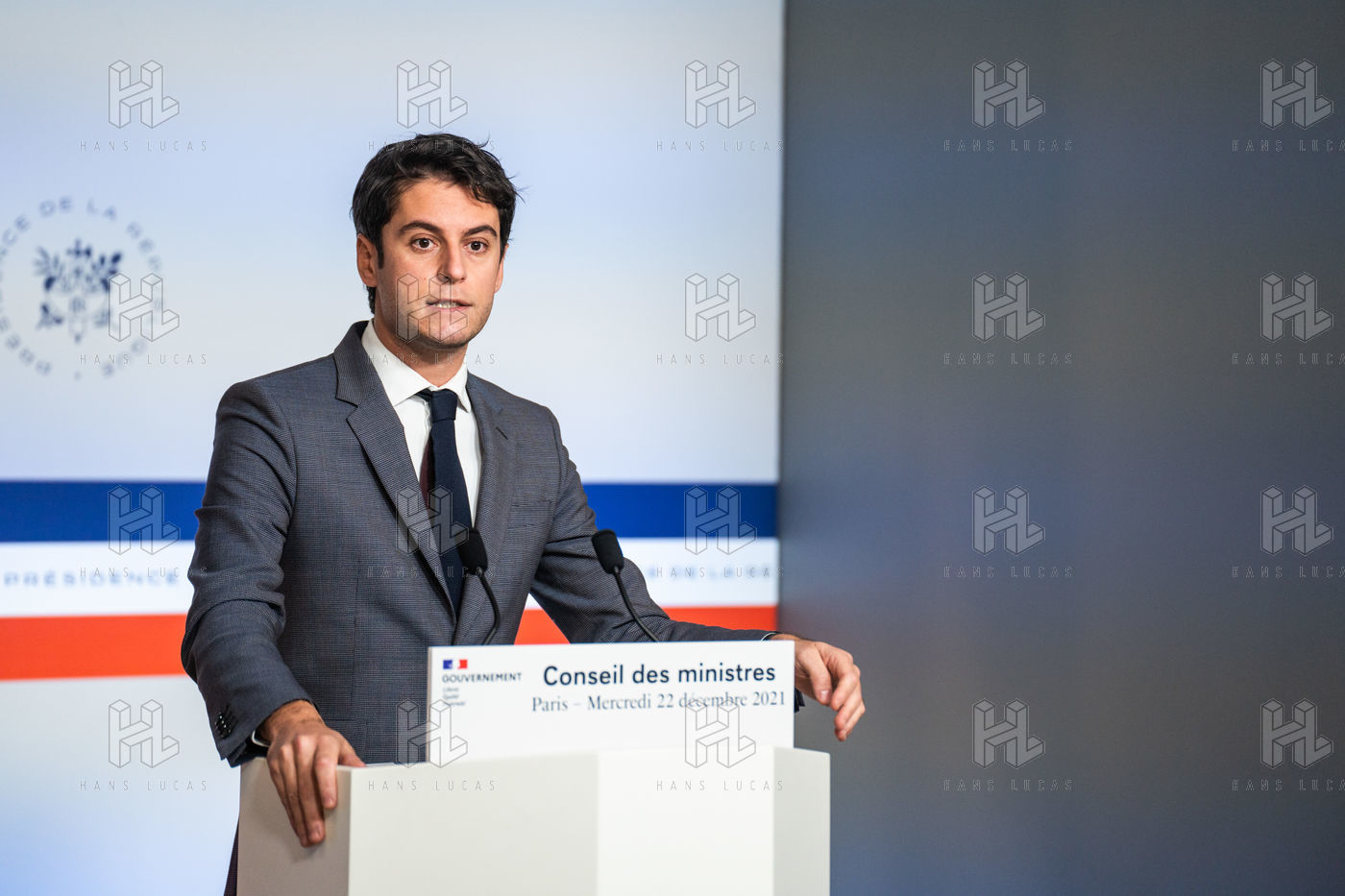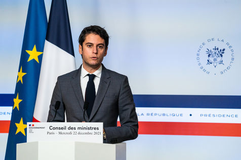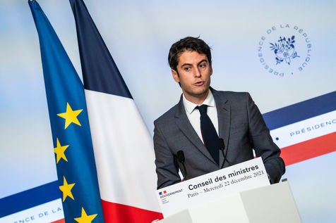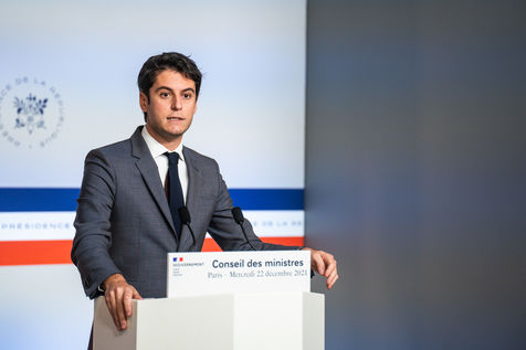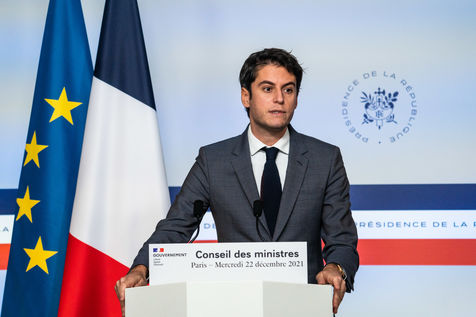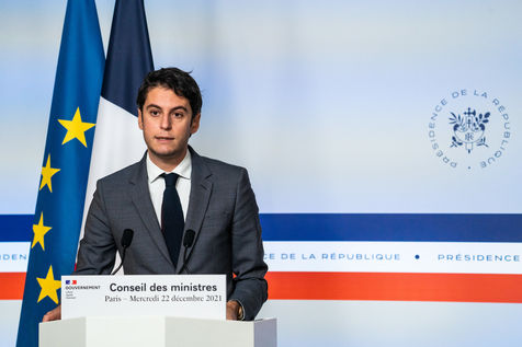 Gabriel Attal, government spokesman, reports after the council of ministers, in the spokesman's room, Paris 22 December 2021.