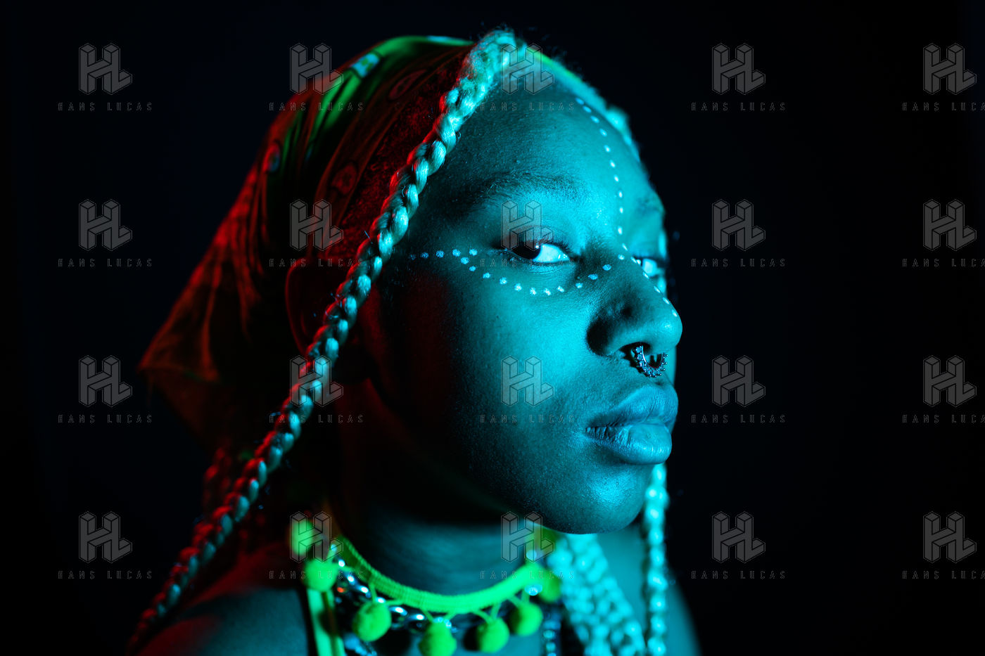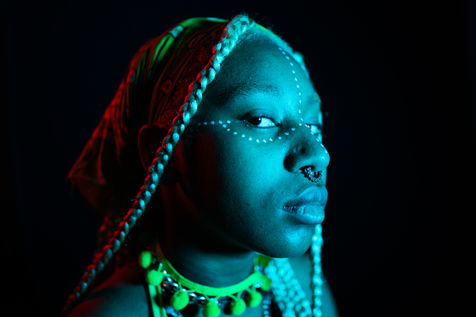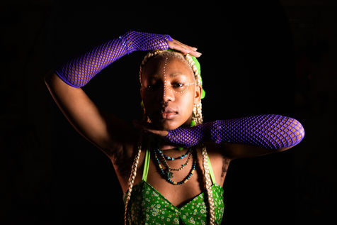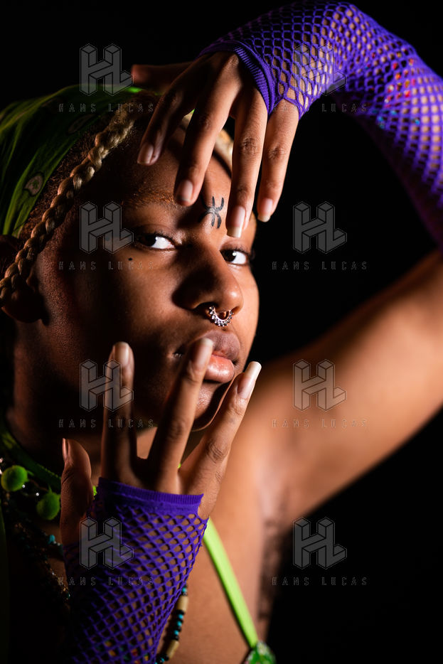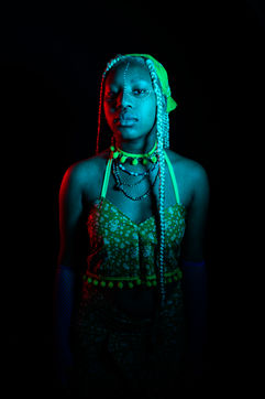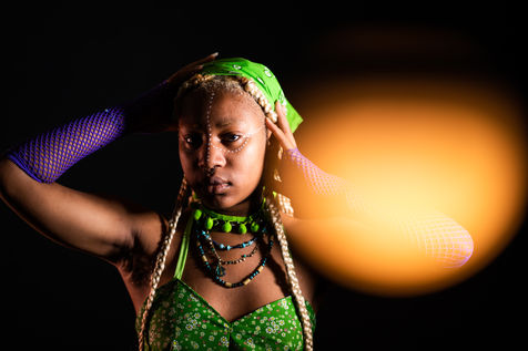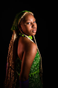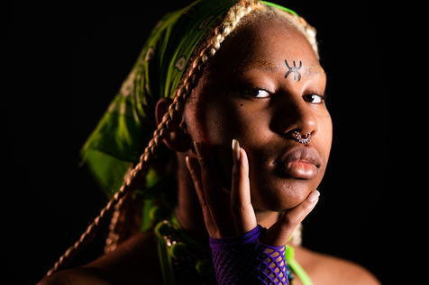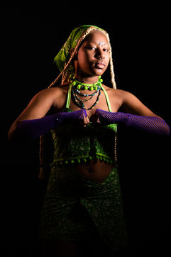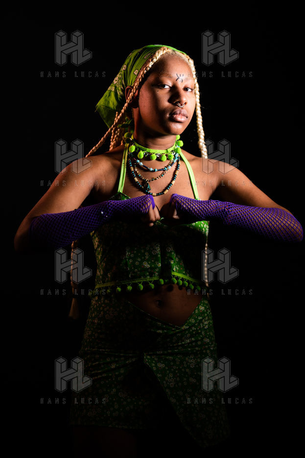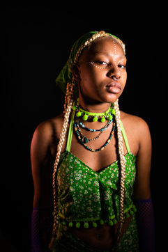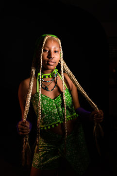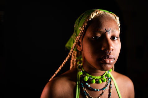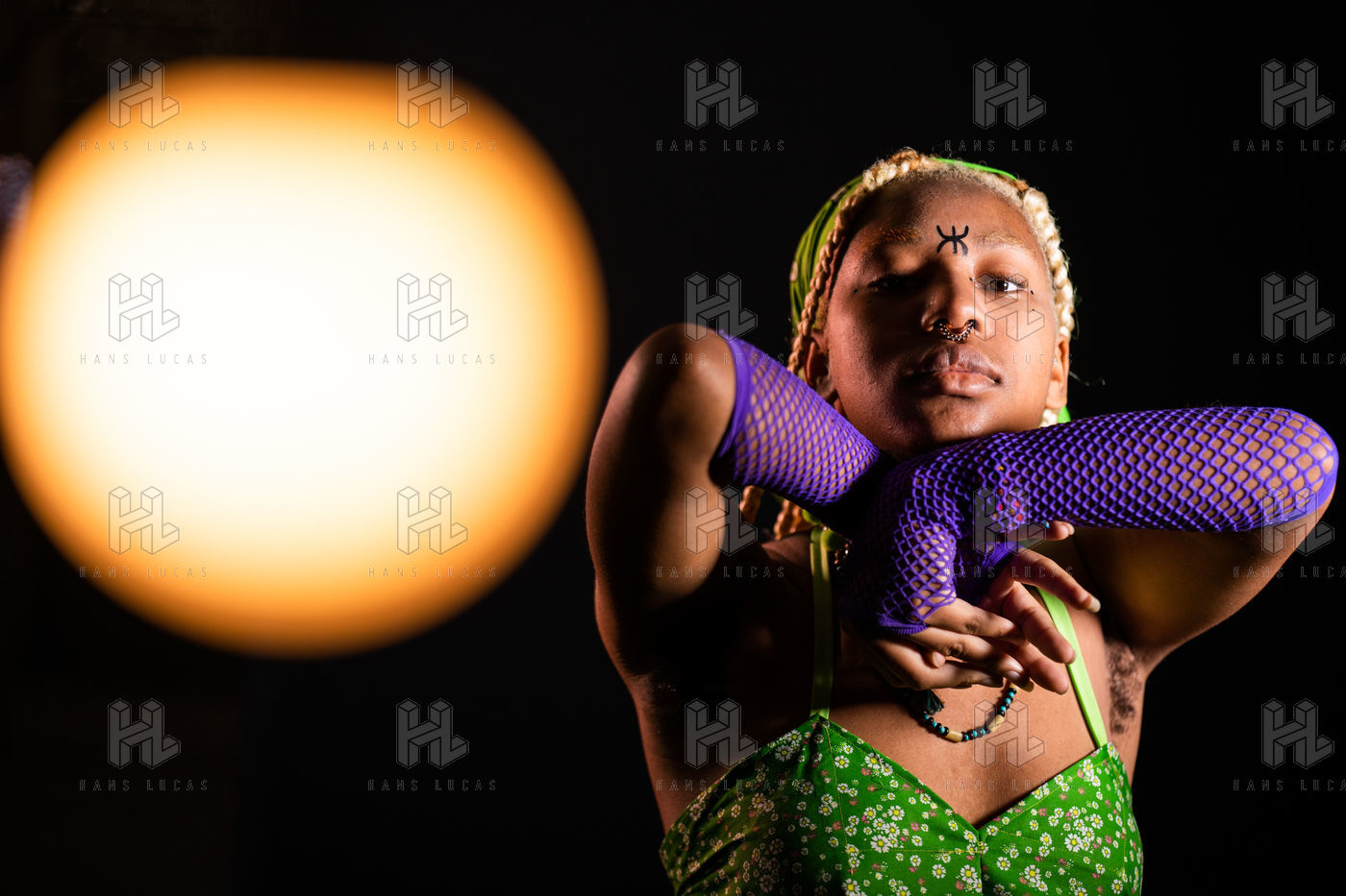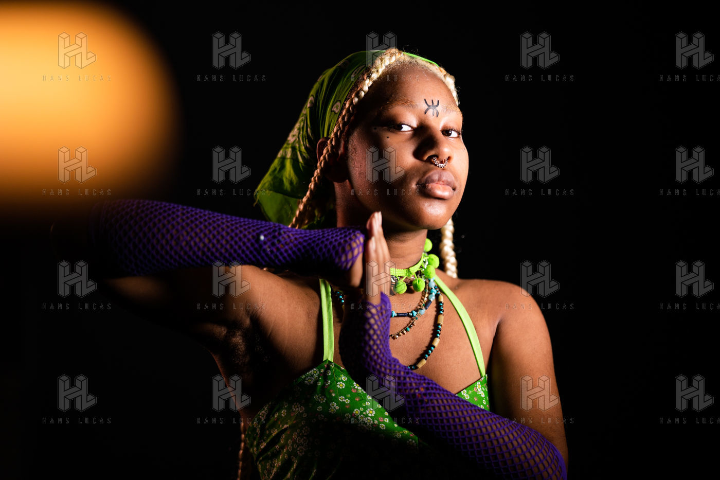 Portrait of Heather, a young non-binary activist who has embarked on activism to help her adelphs and who is working to deconstruct the mentalities about the struggles she faces. Iel designed and sewed the clothes she wears, in connection with her African and Haitian background, to speak out against the underrepresentation of her country of origin and to make sure that everyone involved can feel represented. "I decided to get closer to fashion and dance to express my struggles and my fights to express my point of view and my political convictions because our bodies are political".