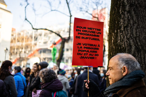 Demonstrations for the popular primary. Activists of the popular primary mobilize in Paris to convince left-wing candidates to present a single candidacy for the presidential election, Paris 15 January 2022.