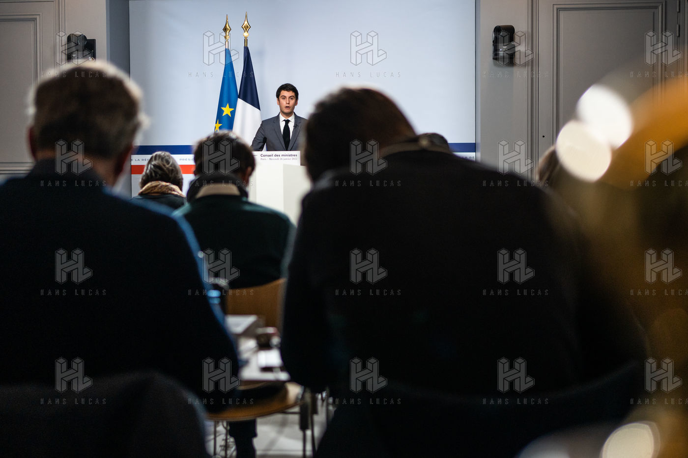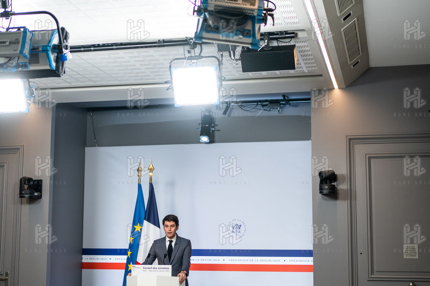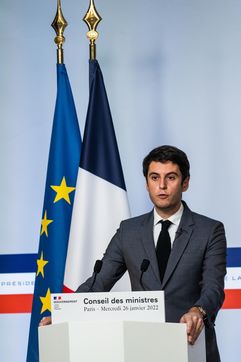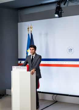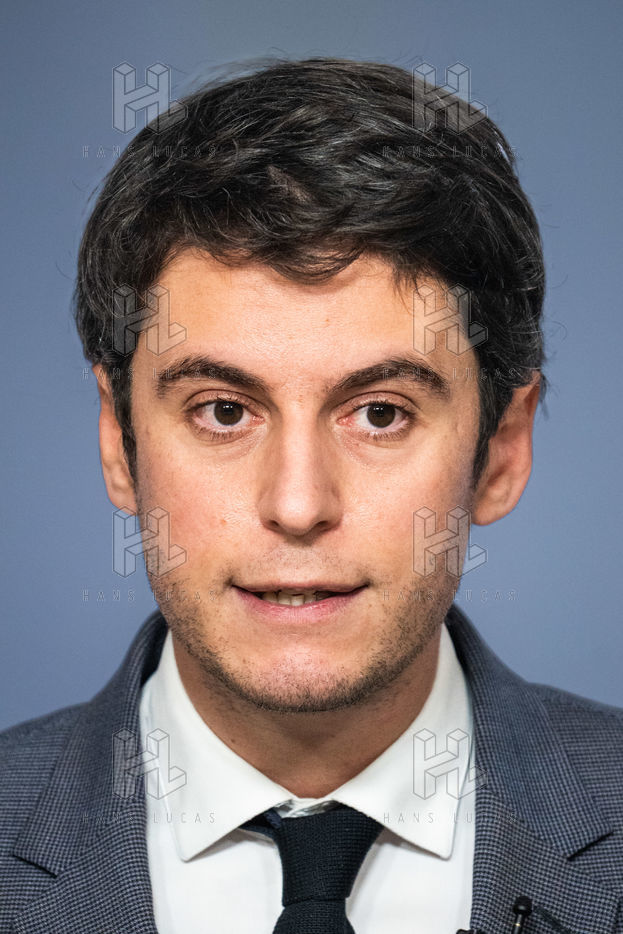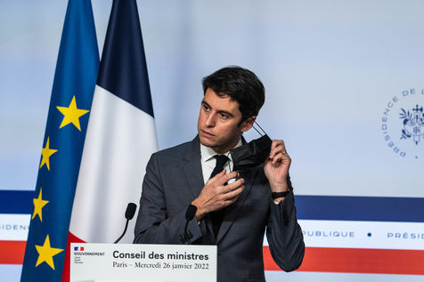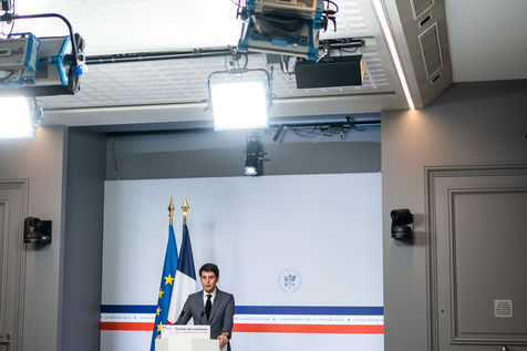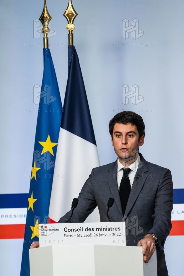 Gabriel Attal, government spokesman, reports after the council of ministers, in the spokesman's room, Paris 26 JANUARY 2021.