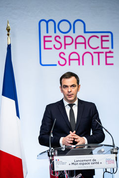 Conférence de presse sur le lancement de mon espace santé. Le système de santé va connaître une évolution avec la création de Mon espace santé, un nouveau service public à la disposition des Français qui leur permettra de stocker et d'accéder à leurs données de santé de manière sécurisée, au ministère des Solidarités et de la Santé.