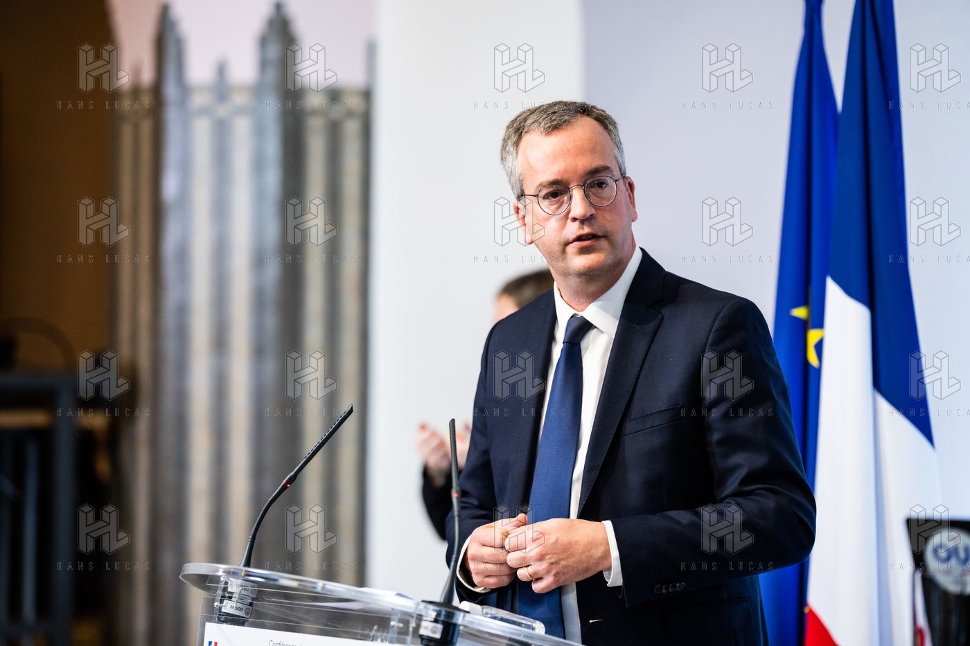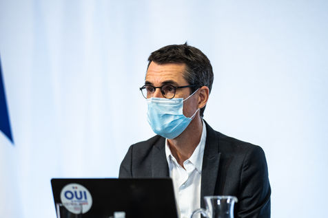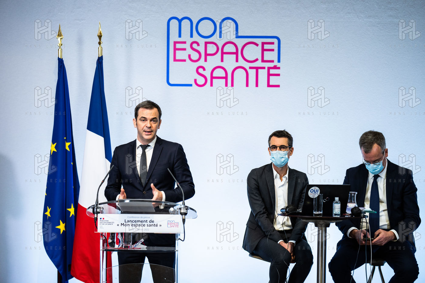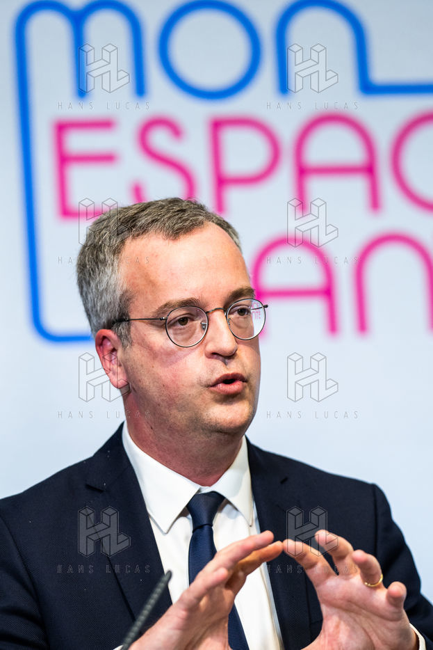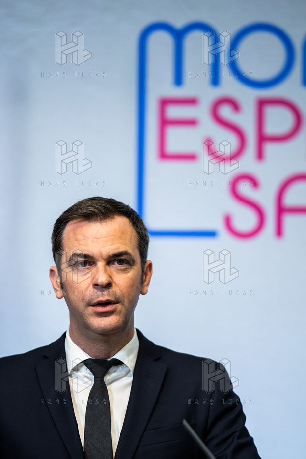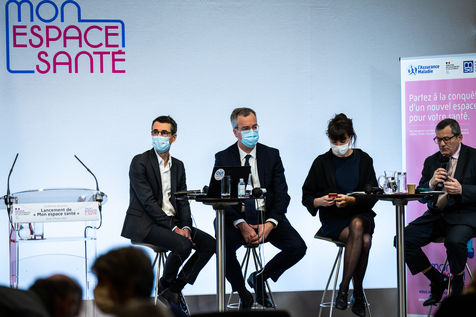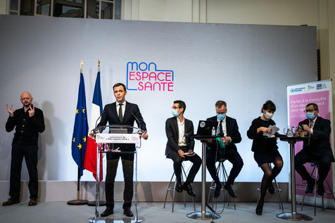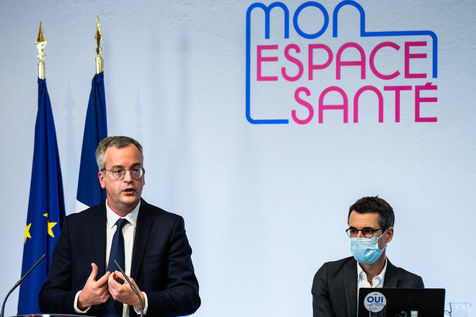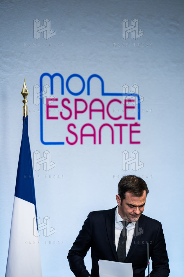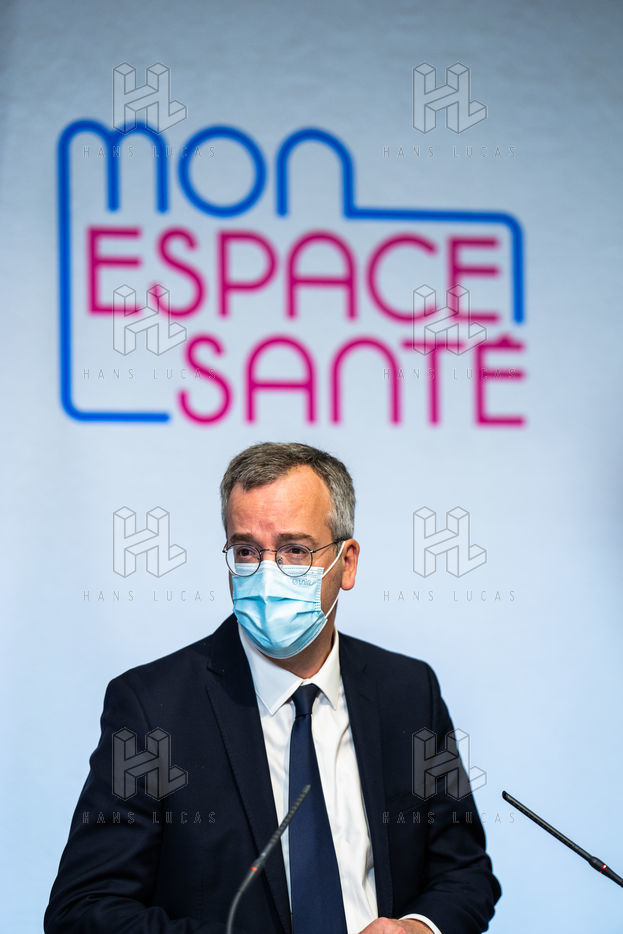 Press conference on the launch of my health space. The health system is about to undergo a change with the creation of Mon espace santé, a new public service available to the French that will allow them to store and access their health data in a secure manner, at the Ministry of Solidarity and Health.