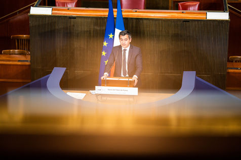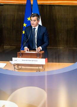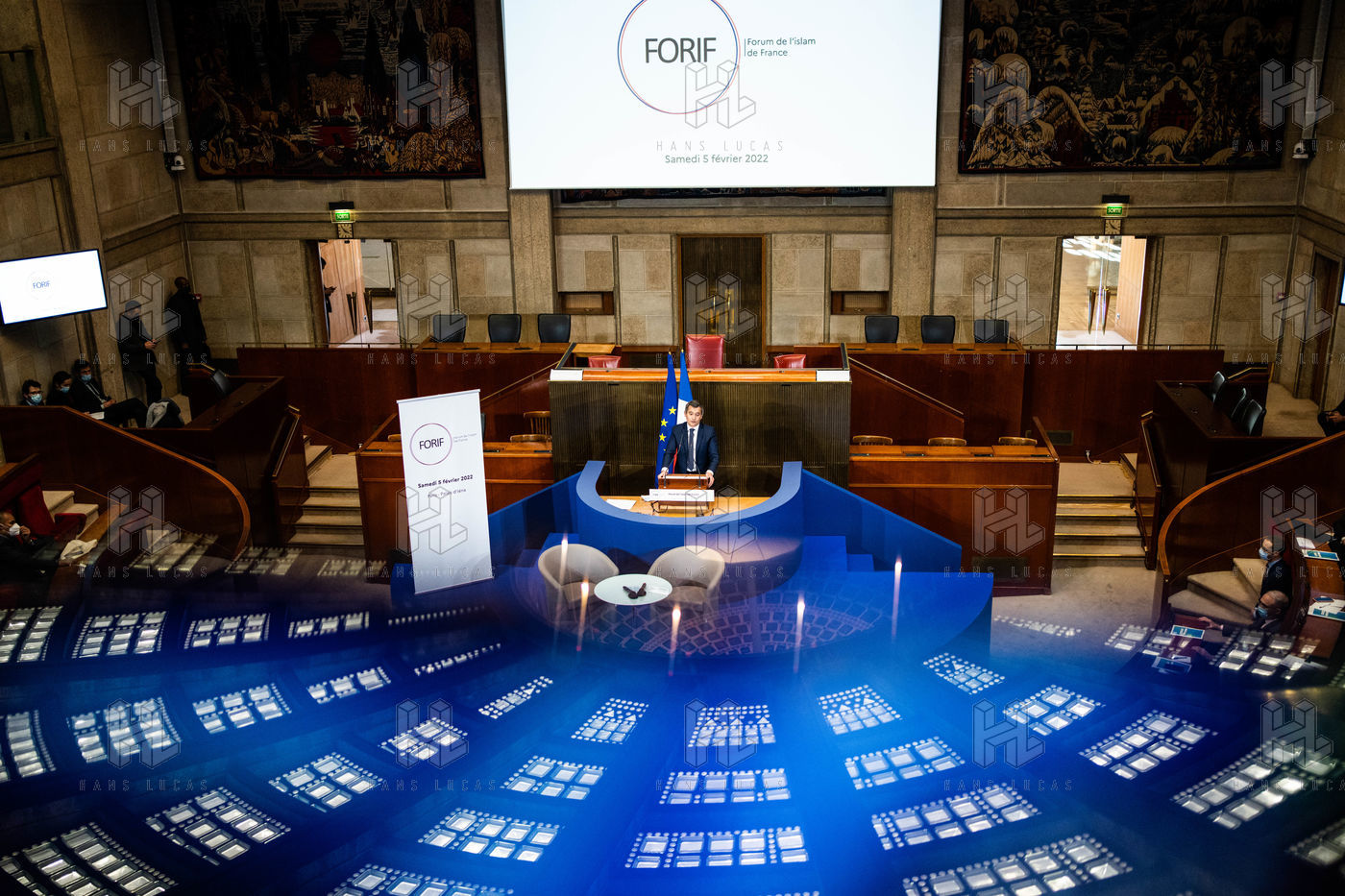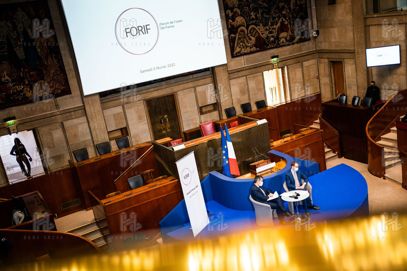 Forum de l'Islam de France au Conseil économique, social et environnemental. Séance plénière de présentation des conclusions des quatre groupes de travail par les rapporteurs. Application de la loi renforçant le respect des principes de la République, la professionnalisation et le recrutement des imams, la sécurité des lieux de culte et la lutte contre les actes antimusulmans, l'organisation et le fonctionnement des aumôneries.