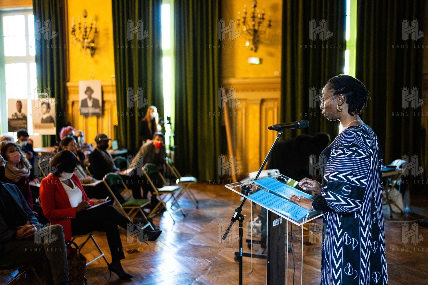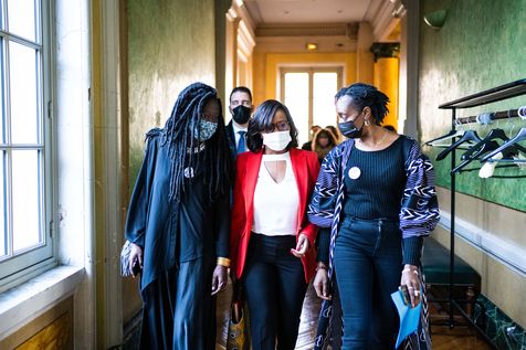 Ouverture de l'événement "10 ans de mobilisation internationale" organisé par le réseau d'associations Excision parlons-en, pour la lutte contre les mutilations génitales féminines, à la veille de la Journée internationale de tolérance zéro à l'égard des mutilations génitales féminines, à la mairie du 19e arrondissement.