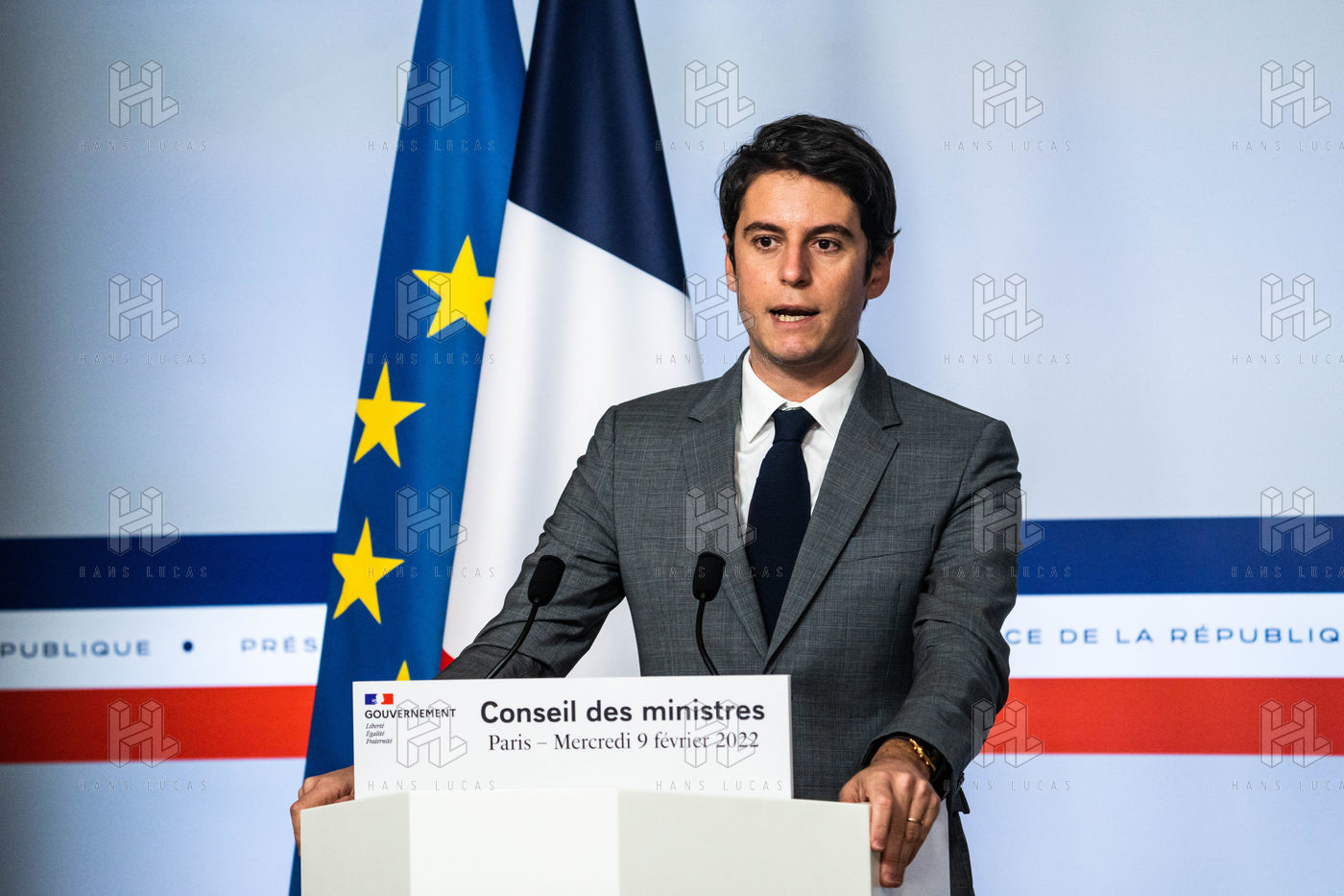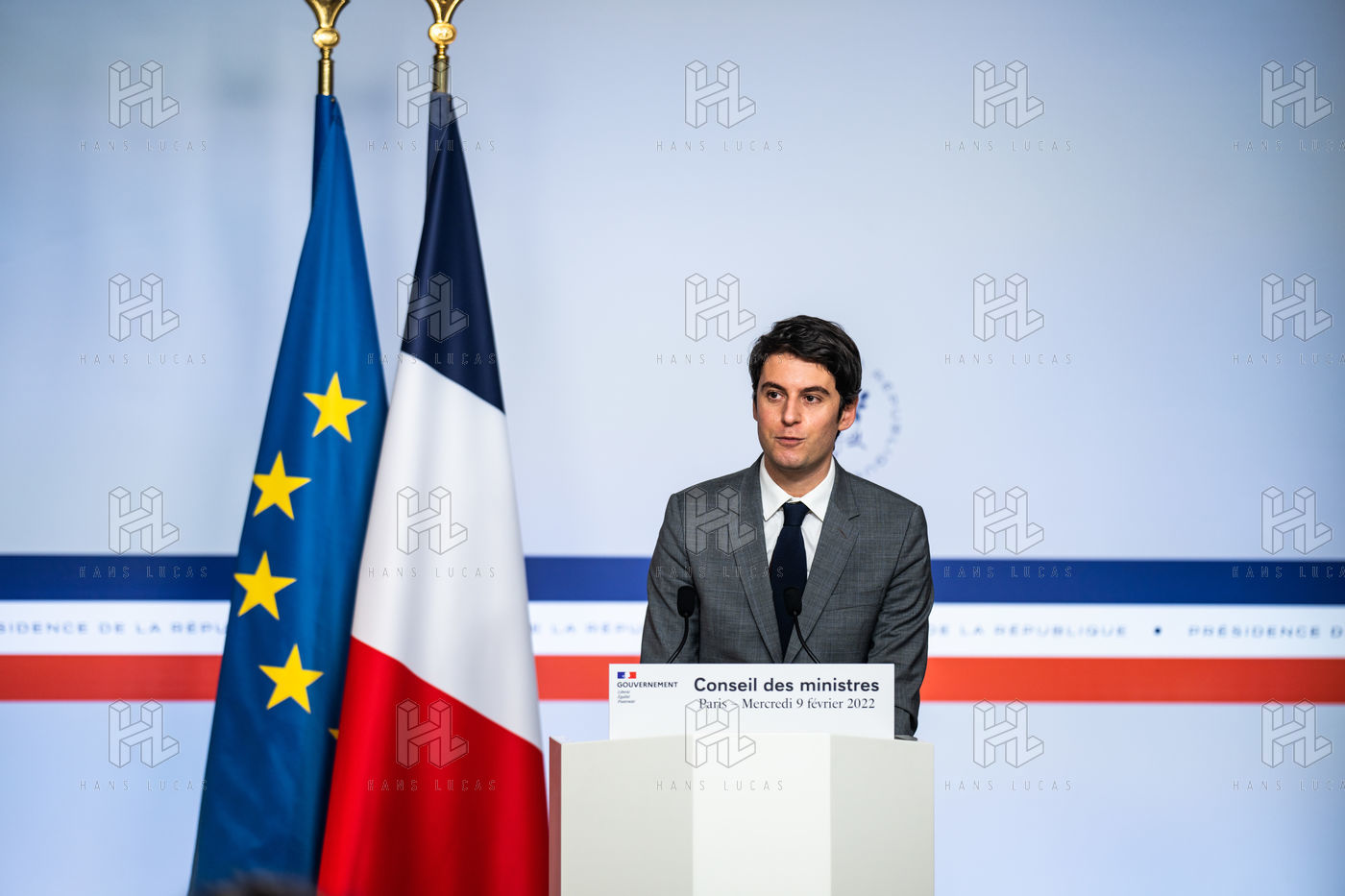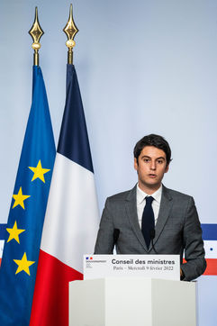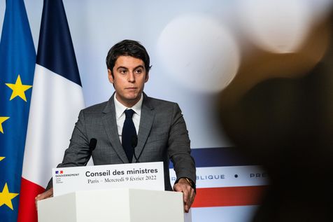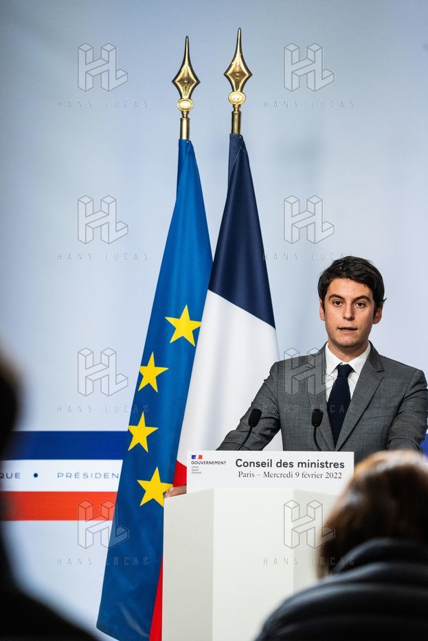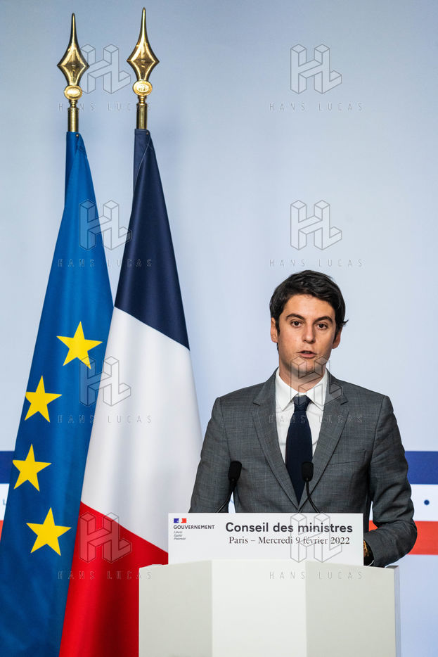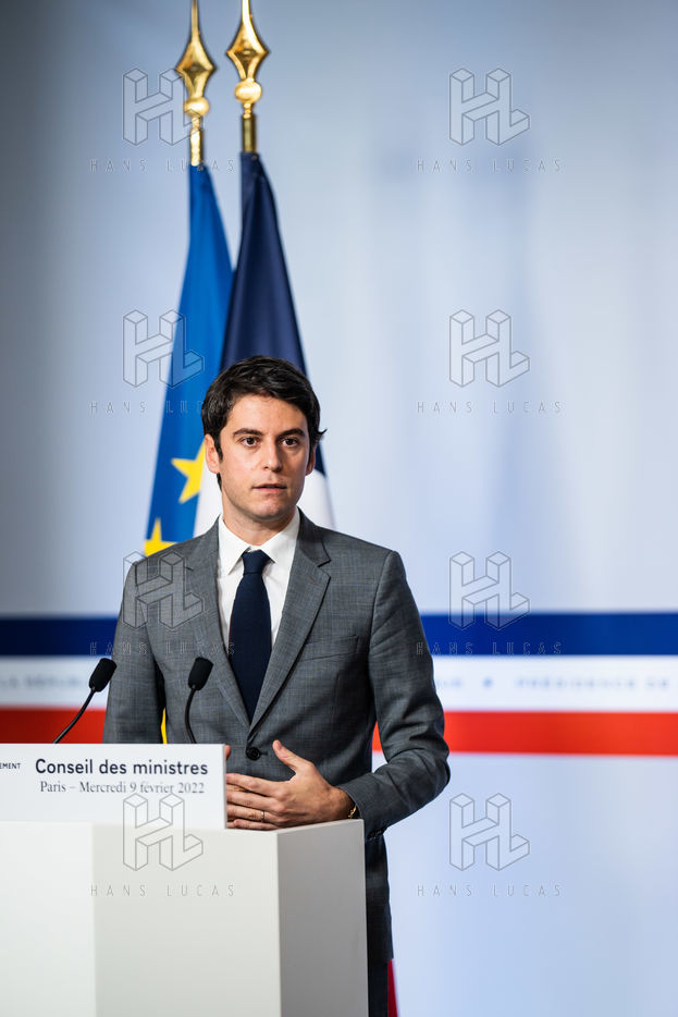Gabriel Attal, government spokesman, reports after the council of ministers, in the spokesman's room, Paris 09 February 2022.