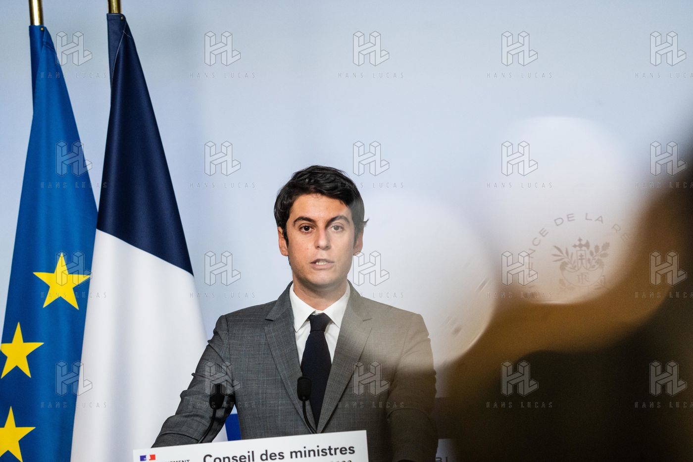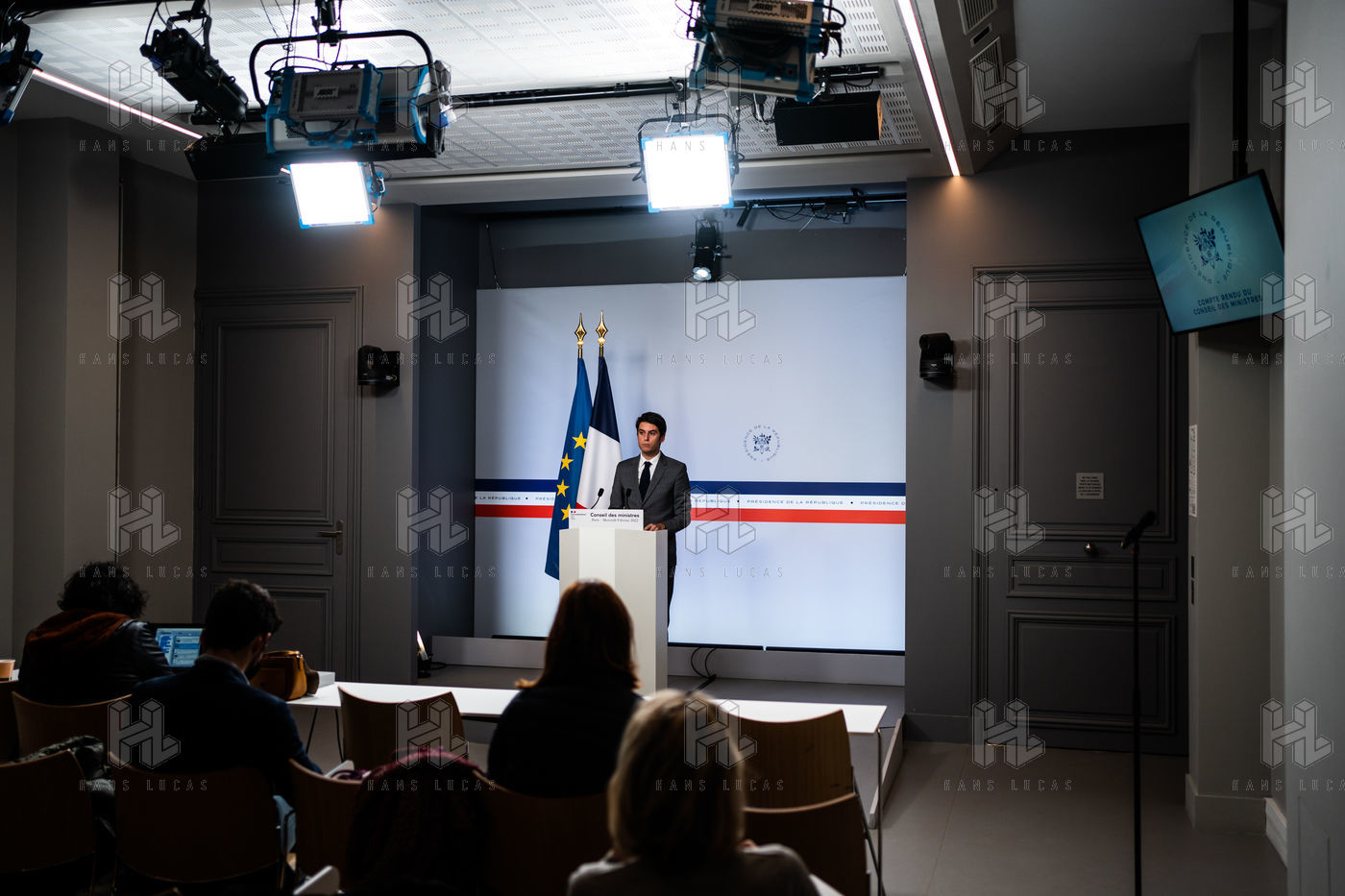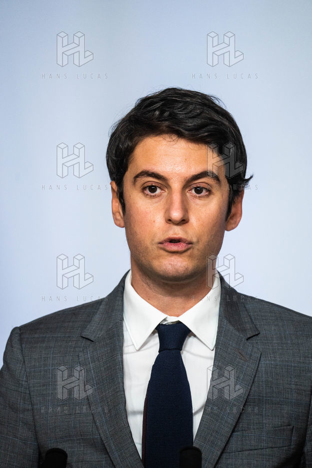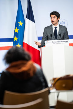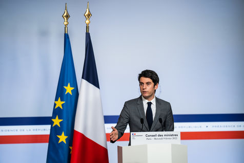 Gabriel Attal, government spokesman, reports after the council of ministers, in the spokesman's room, Paris 09 February 2022.