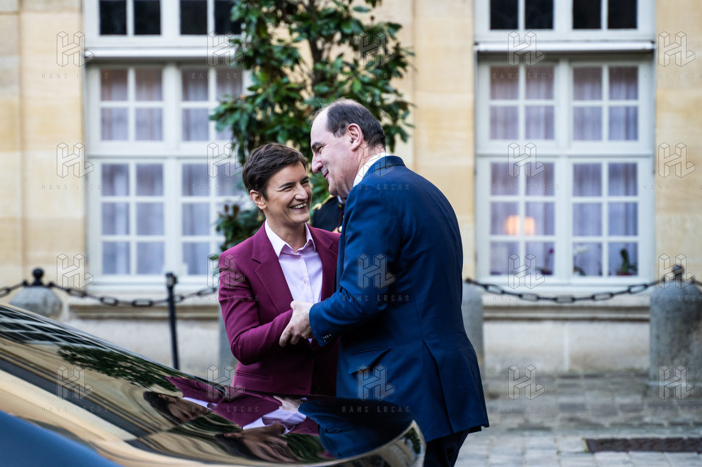 Entretien entre le Premier ministre français et le président du gouvernement de Serbie à l'Hôtel de Matignon.