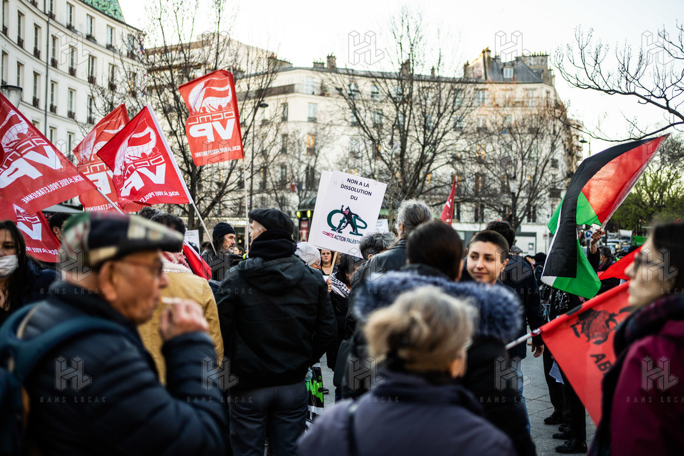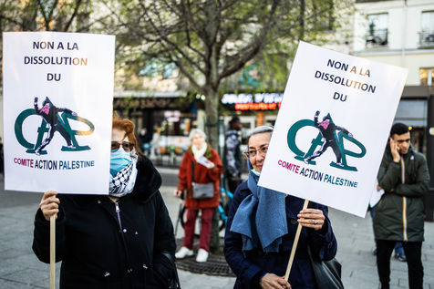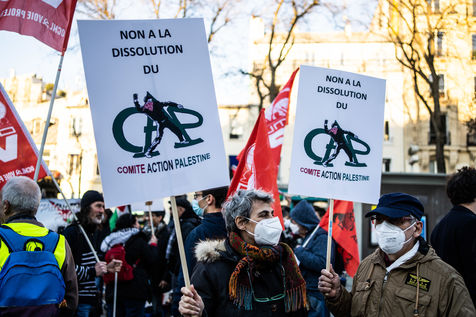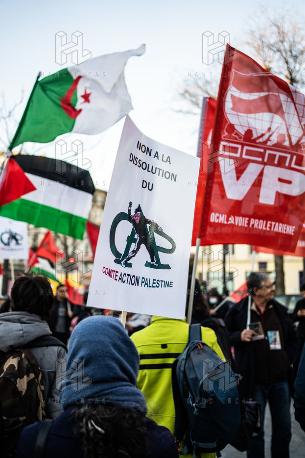 Rally against the dissolution of the Collectif Palestine vaincra and the Comite action palestine