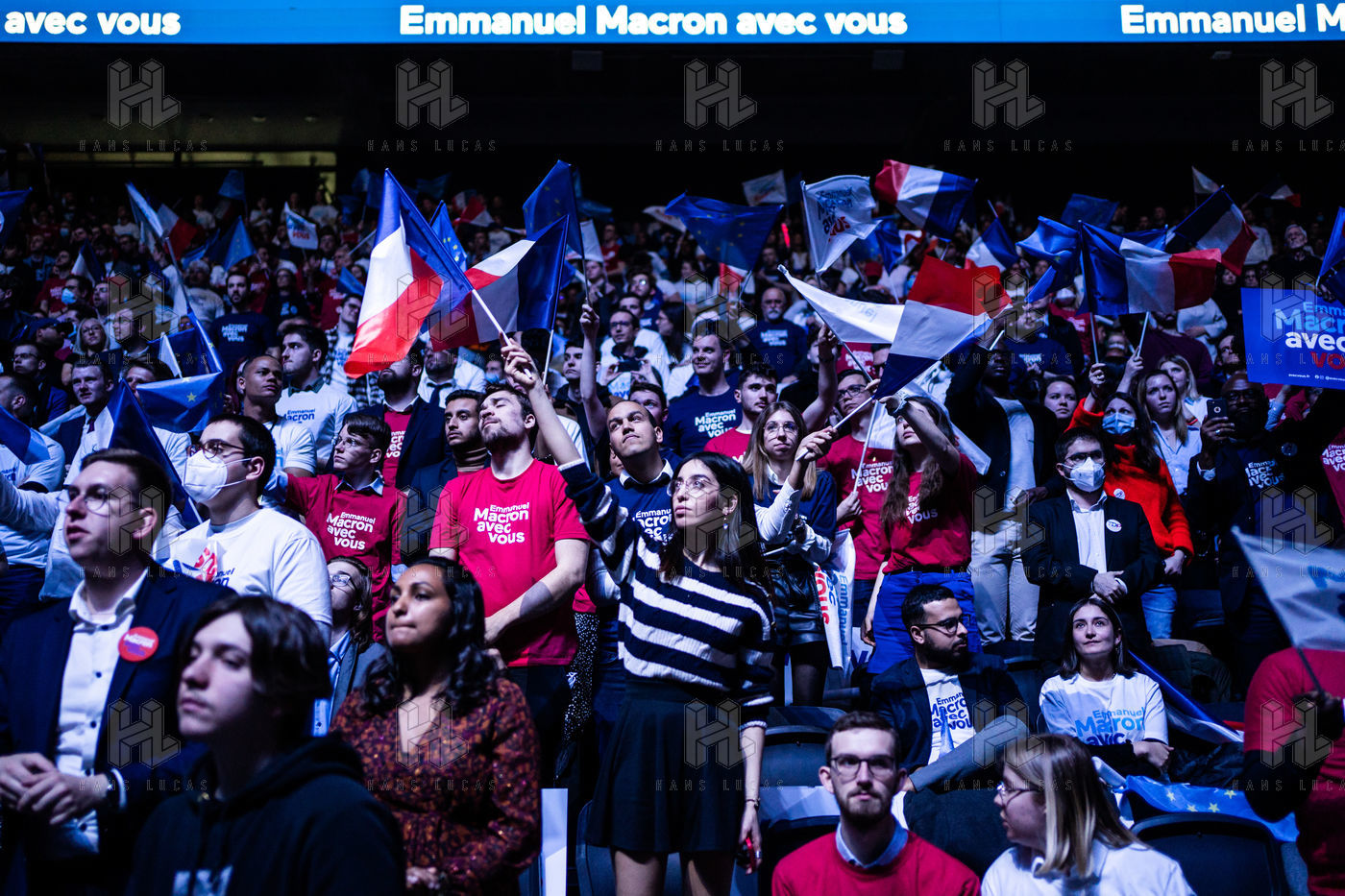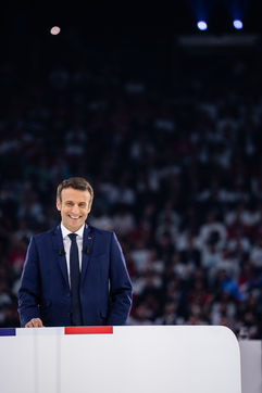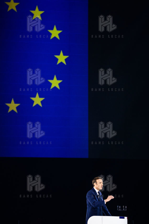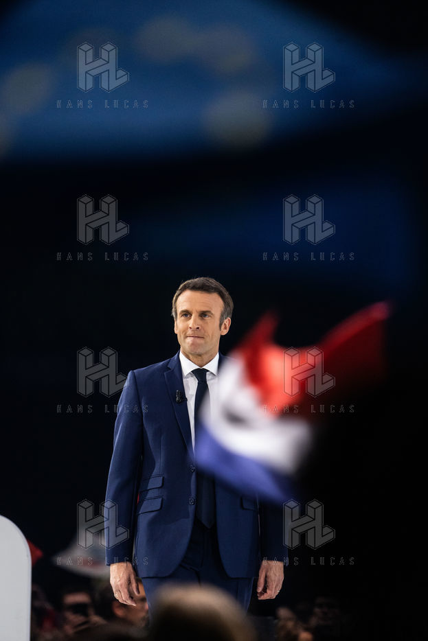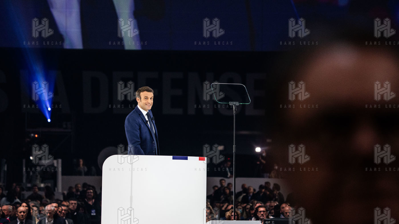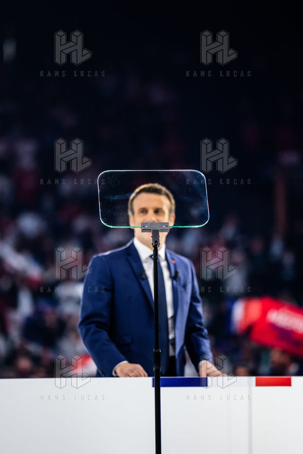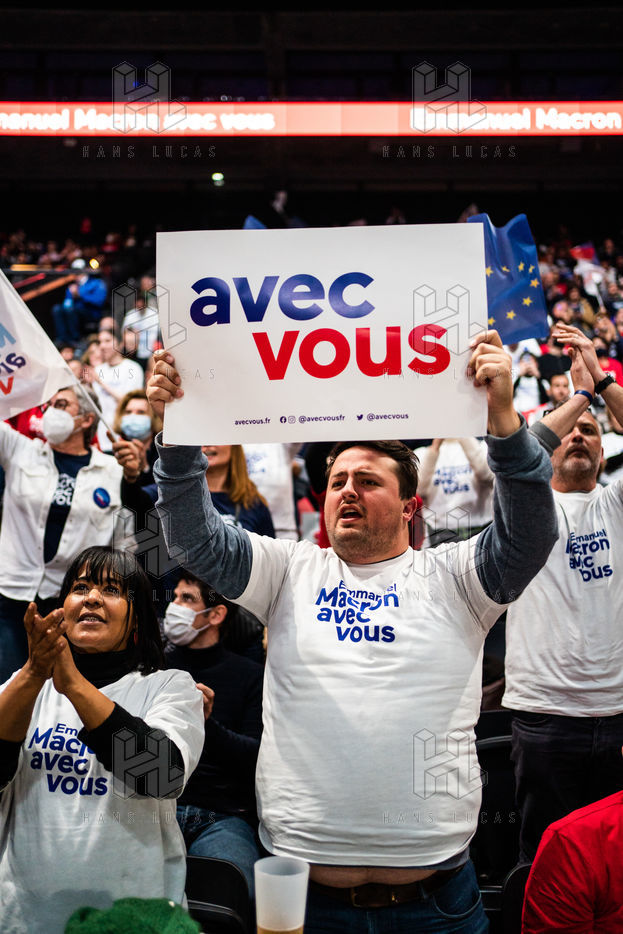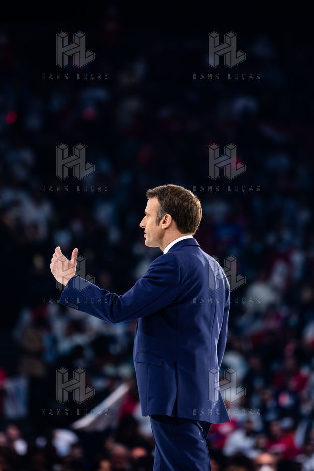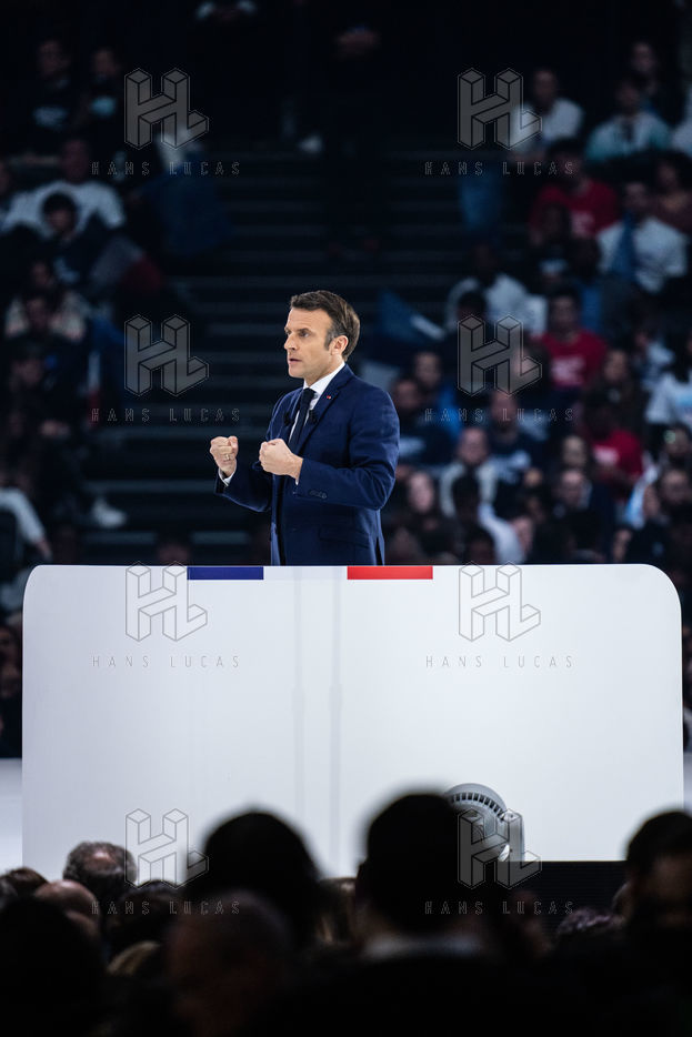 Meeting politique d'Emmanuel Macron, président de la république française, candidat à la présidence pour un second mandat, à Paris La Défense Arena.