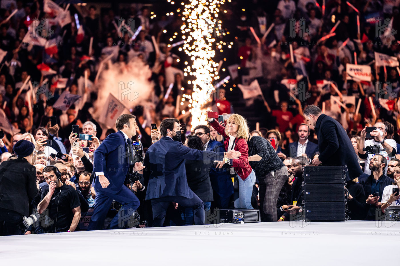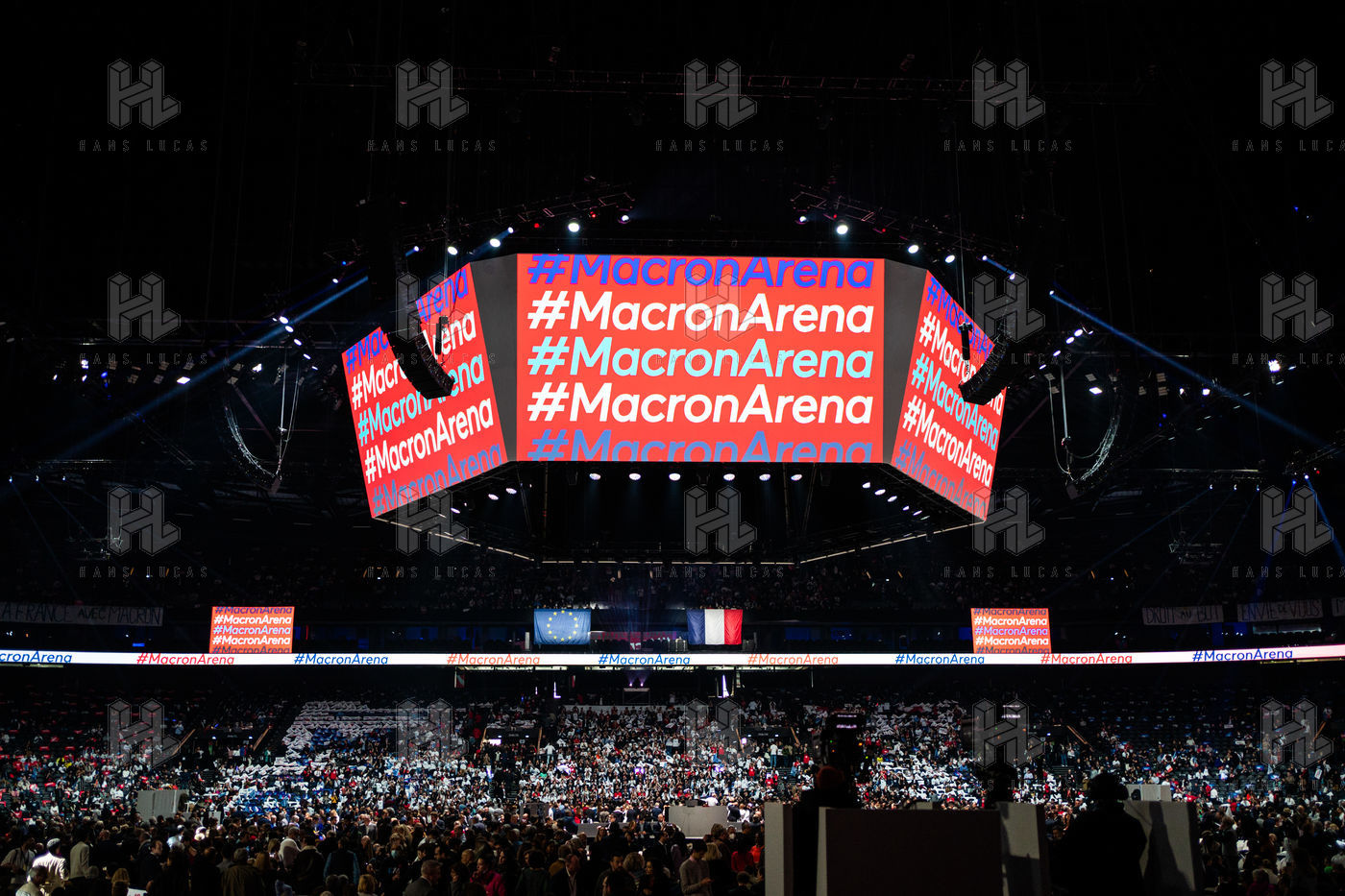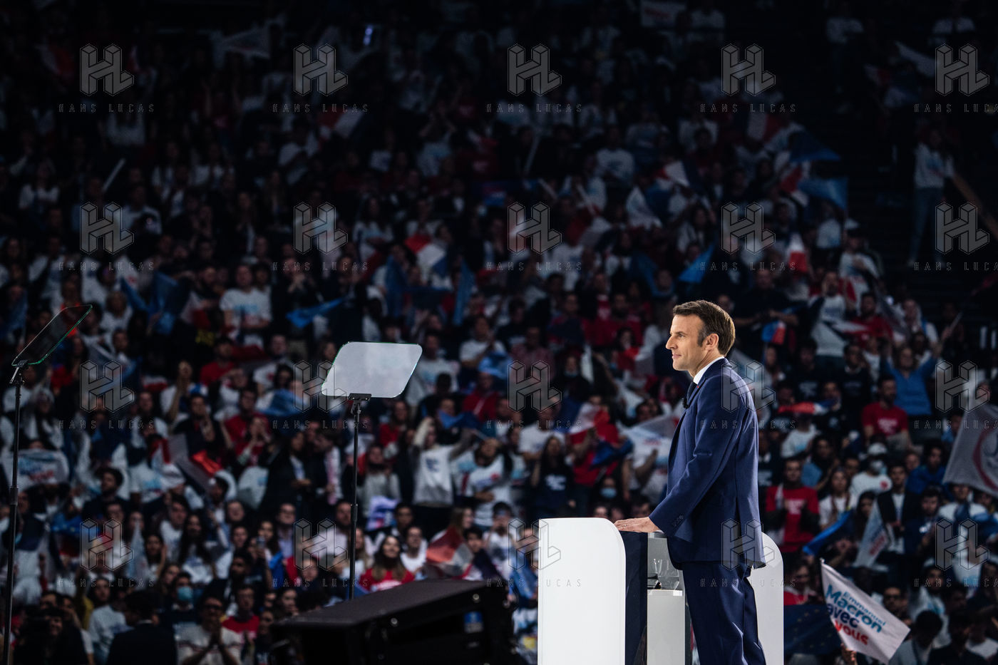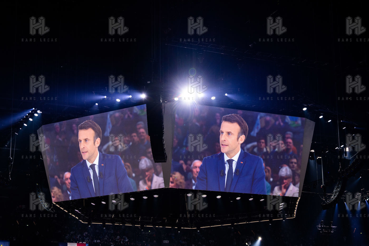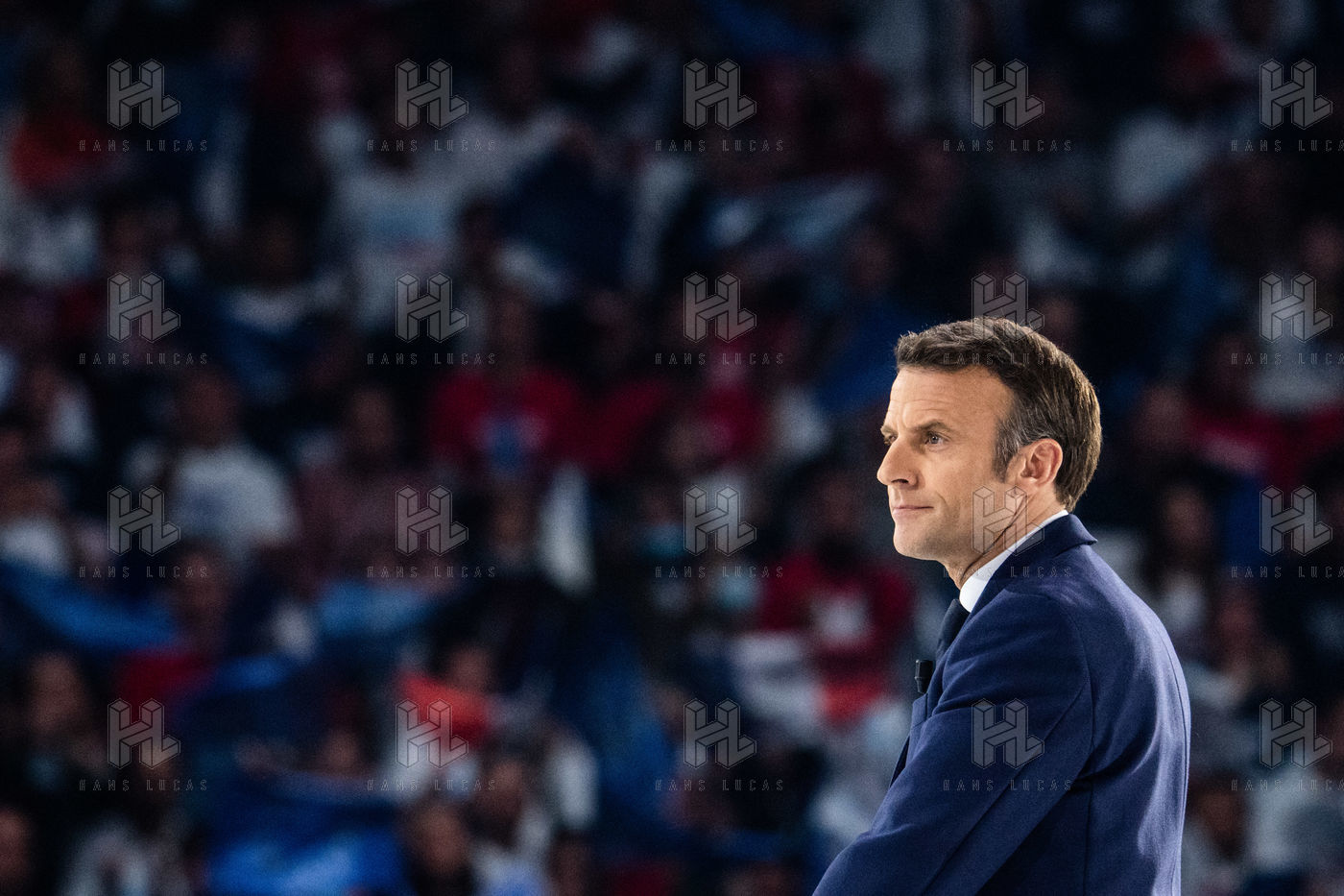 Meeting politique d'Emmanuel Macron, président de la république française, candidat à la présidence pour un second mandat, à Paris La Défense Arena.