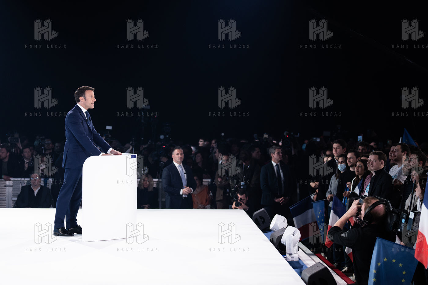Electoral evening of the presidential majority of Emmanuel Macron, president of the French republic, candidate to the presidential election 2022, on the occasion of the first round of the election at Paris Expo Porte de Versailles.