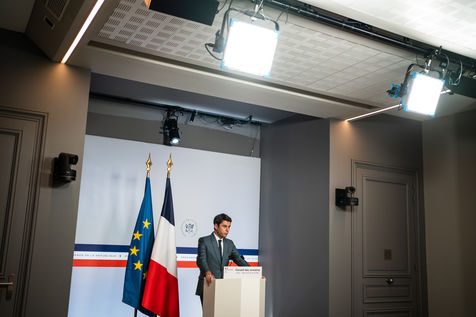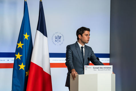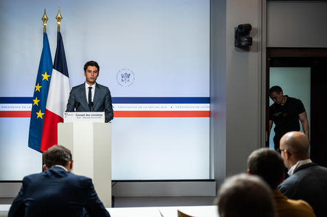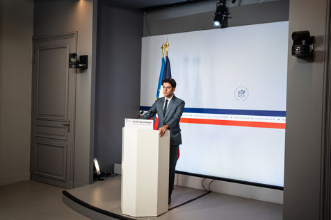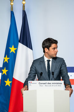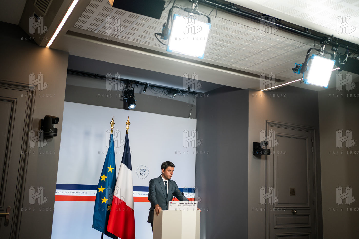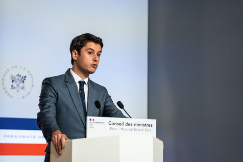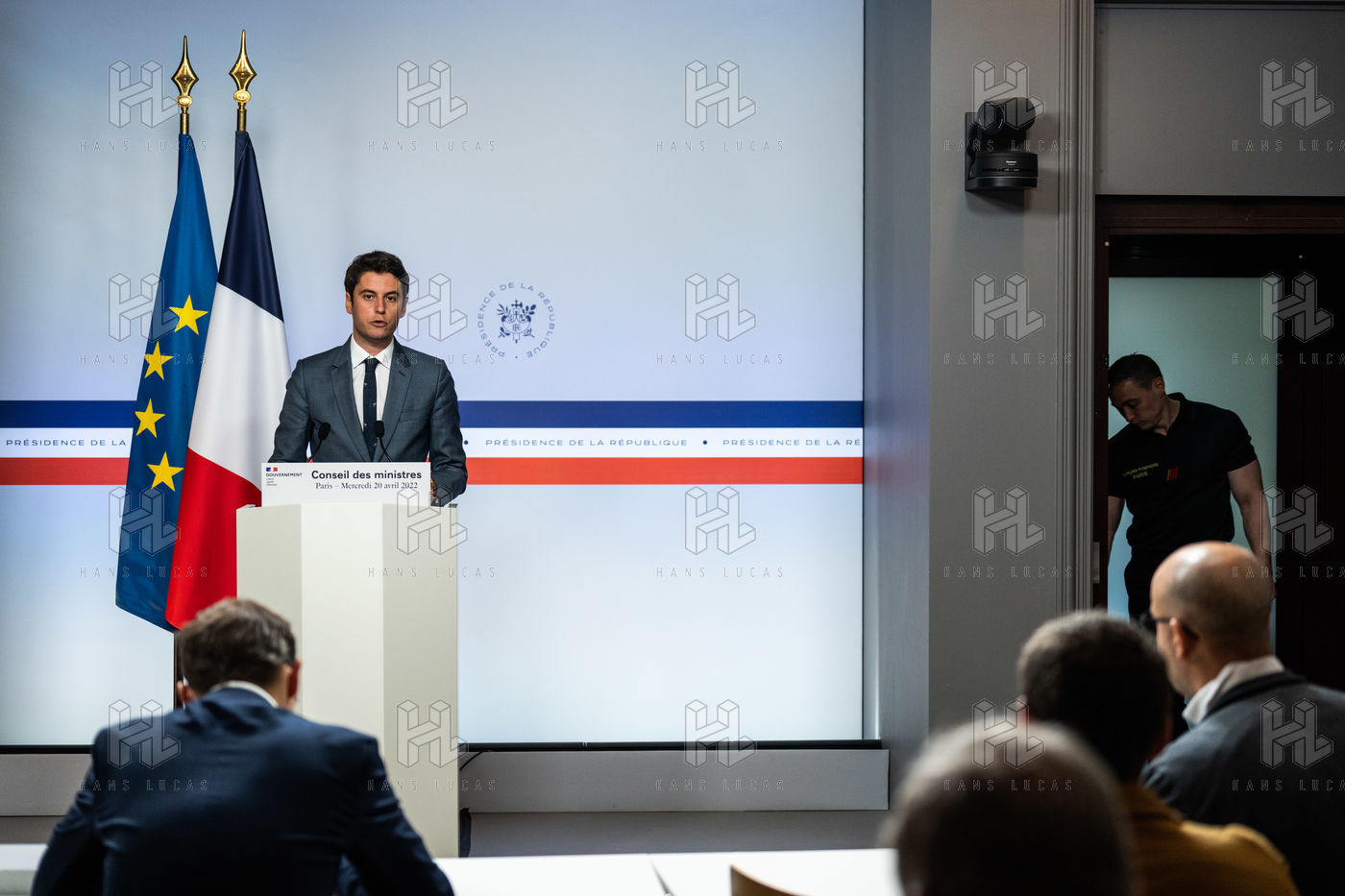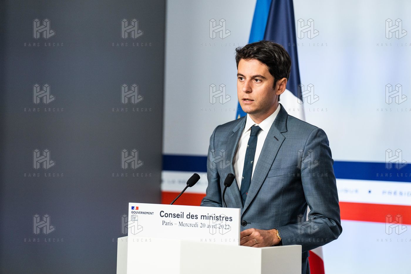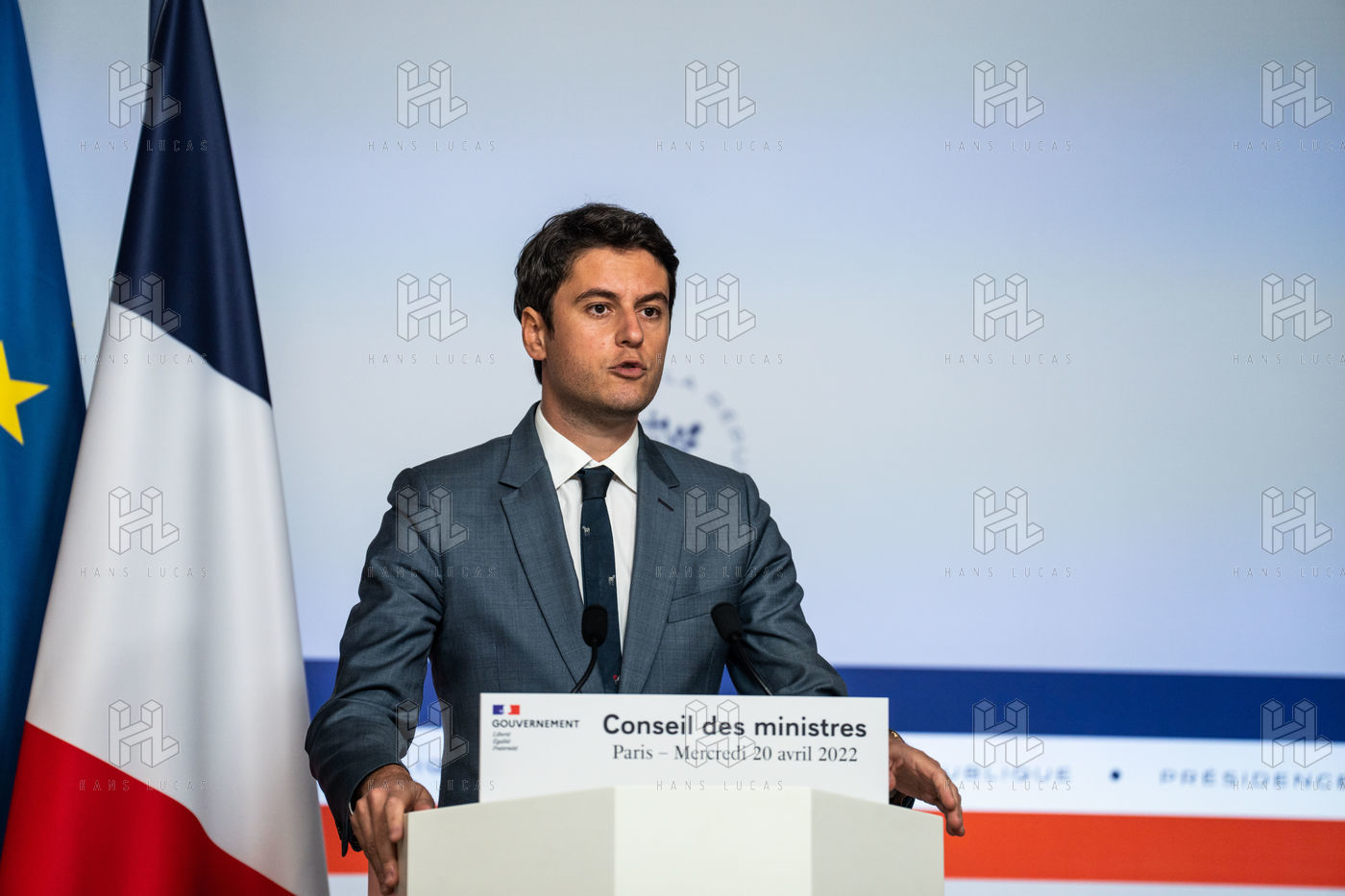 Gabriel Attal, government spokesman, reports after the council of ministers, in the spokesman's room, Paris 20 April 2022.