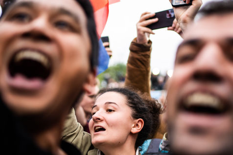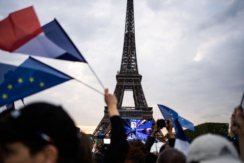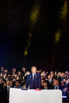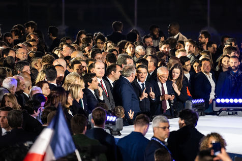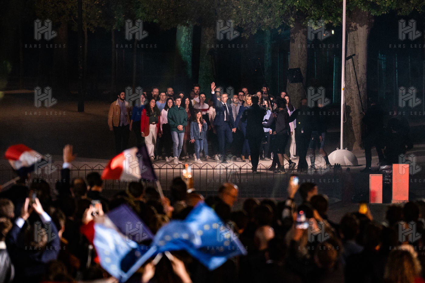 Soirée électorale de la majorité présidentielle d'Emmanuel Macron, président de la République française, président du parti La République en marche, candidat à l'élection présidentielle 2022, à l'occasion du second tour de l'élection au Champ de Mars de Paris.