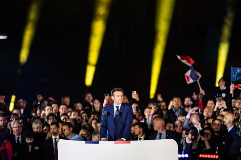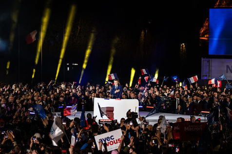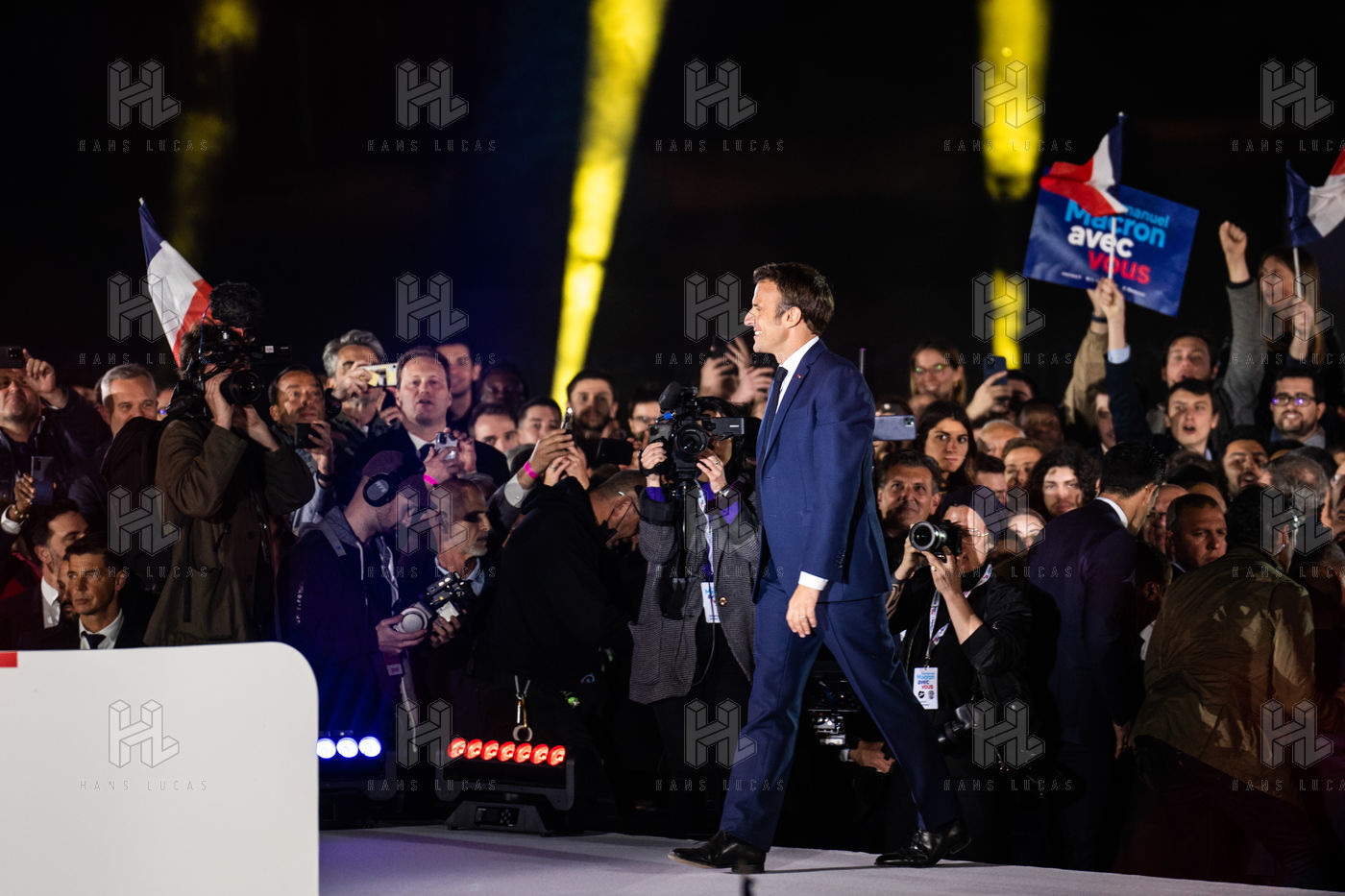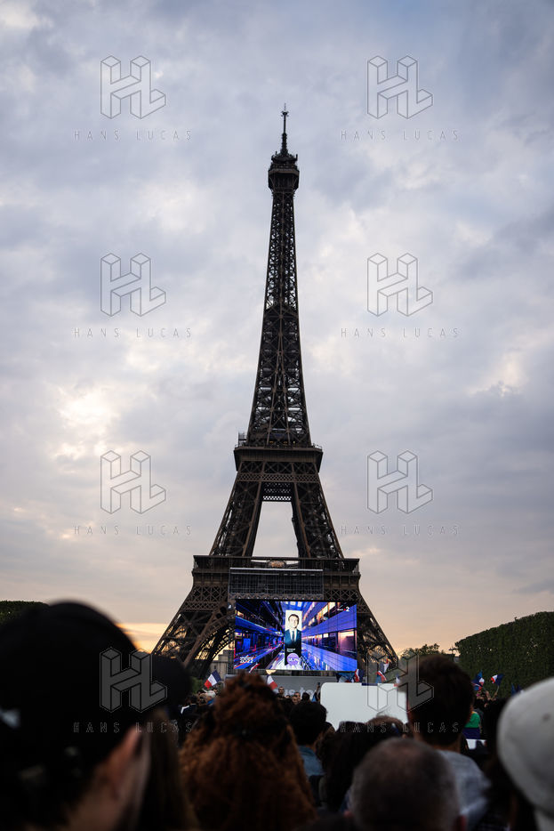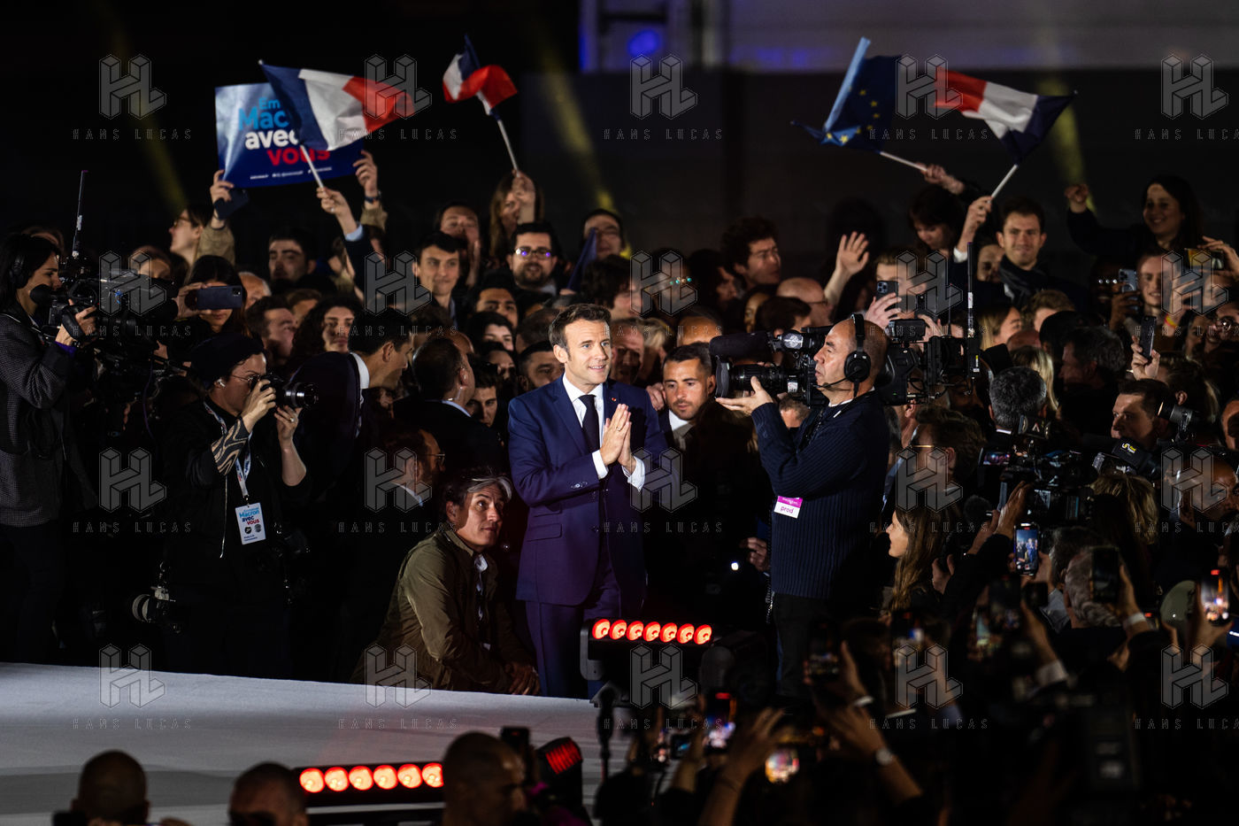 Election night of the presidential majority of Emmanuel Macron, president of the French Republic, president of the party La République en marche, candidate for the presidential election 2022, on the occasion of the second round of the election at the Champ de Mars in Paris.