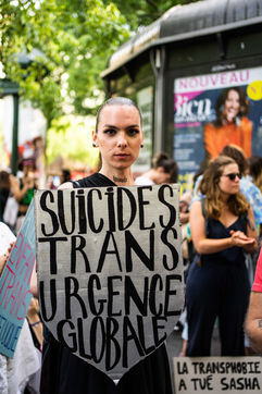 Manifestation annuelle pour les droits des personnes transgenres et intersexes, au lendemain du suicide d'une adolescente transgenre dans son lycée du Mans, face à une précarité croissante et un contexte réactionnaire. La marche, organisée depuis 1997 par le collectif du même nom Existrans, rebaptisé Existransinterinsistent, insiste sur la dimension vitale de leurs revendications.