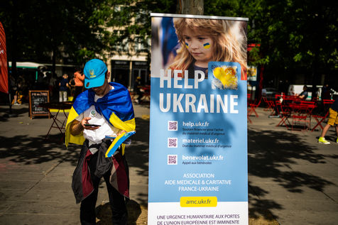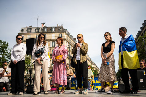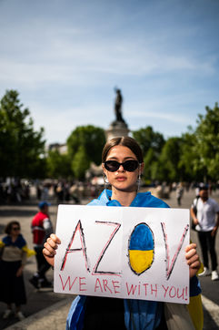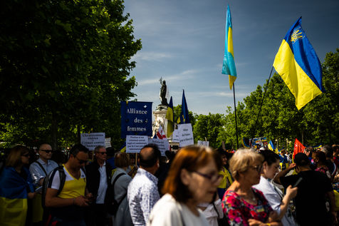 Demonstration against the Russian military invasion in Ukraine and in support of the Ukrainian people, on the Place de la République.