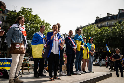 Manifestation contre l'invasion militaire russe en Ukraine et en soutien au peuple ukrainien, sur la place de la République.
