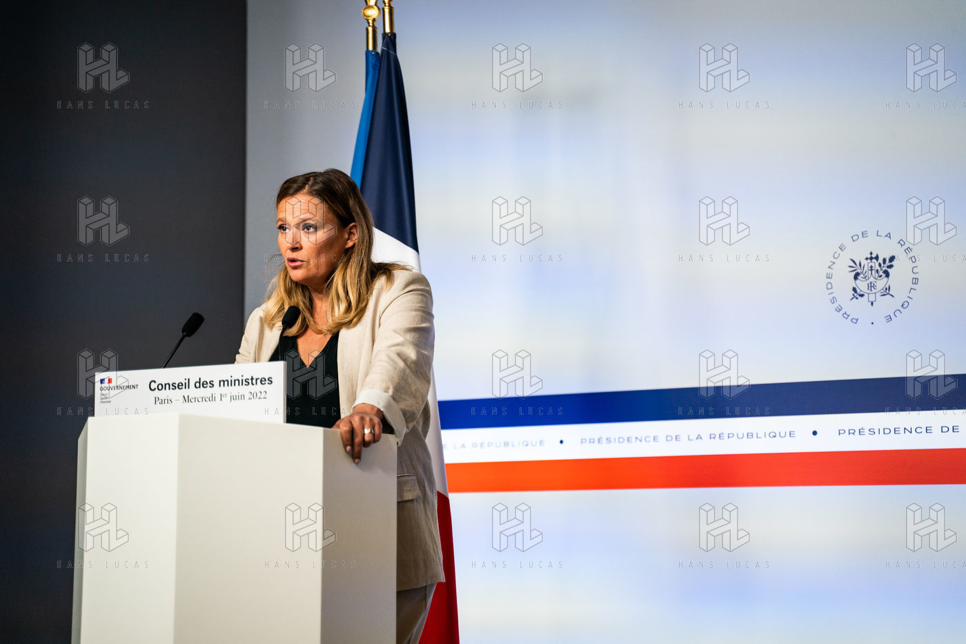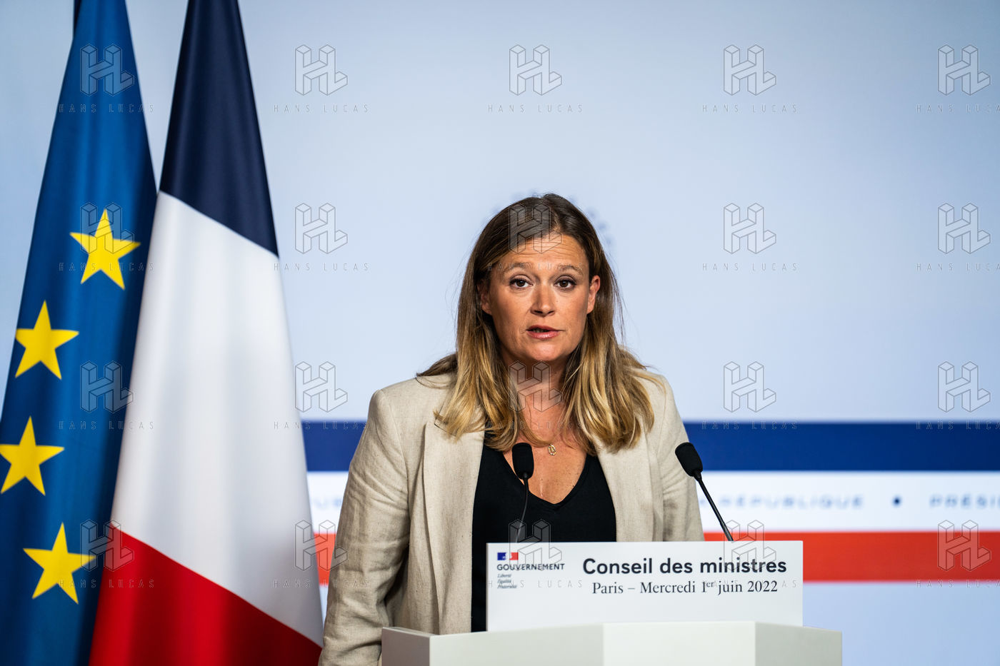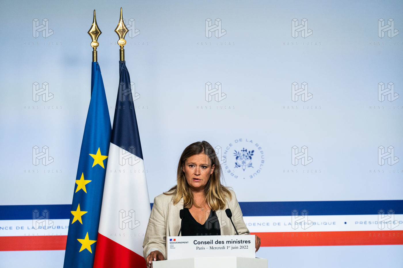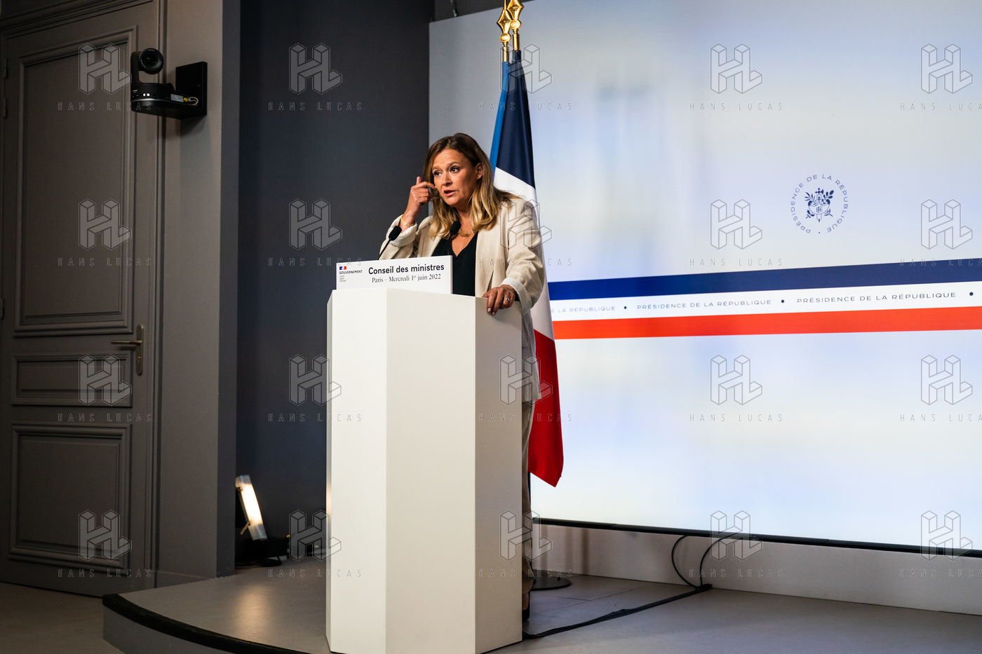Report at the end of the Council of Ministers, in the Spokesman's Room, Paris, June 1, 2022.
