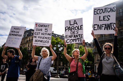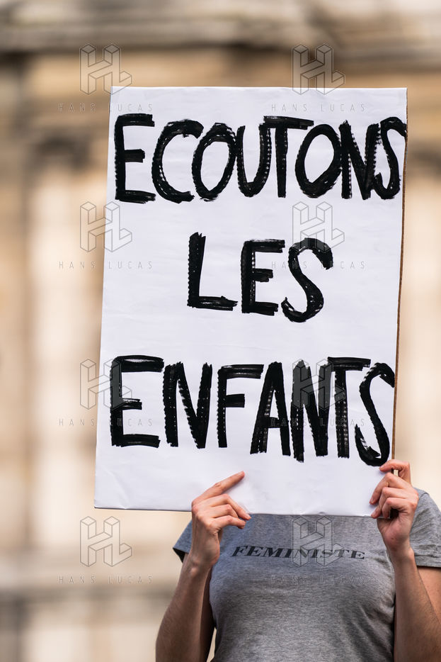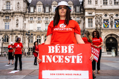 Rally against violence against children at the call of the collective Enfantiste, to stop the abuse and protect the child, at the city hall of Paris.