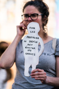 Rassemblement contre les violences faites aux enfants à l'appel du collectif enfantiste, pour arrêter la maltraitance et protéger l'enfant, à l'hôtel de ville de Paris.