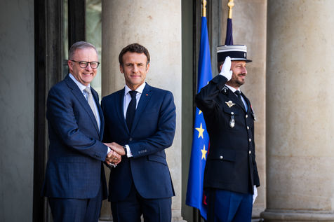 Working lunch between Anthony Albanese, Prime Minister of Australia, and Emmanuel Macron, President of the French Republic, at the Élysée Palace. Bilateral talks on the measures needed to rebuild trust between our two countries, with the aim of strengthening cooperation on issues of common interest, such as the stability and prosperity of the Indo-Pacific region, the climate emergency, and the Russian aggression against Ukraine and its consequences on the food and energy security of the rest of the world