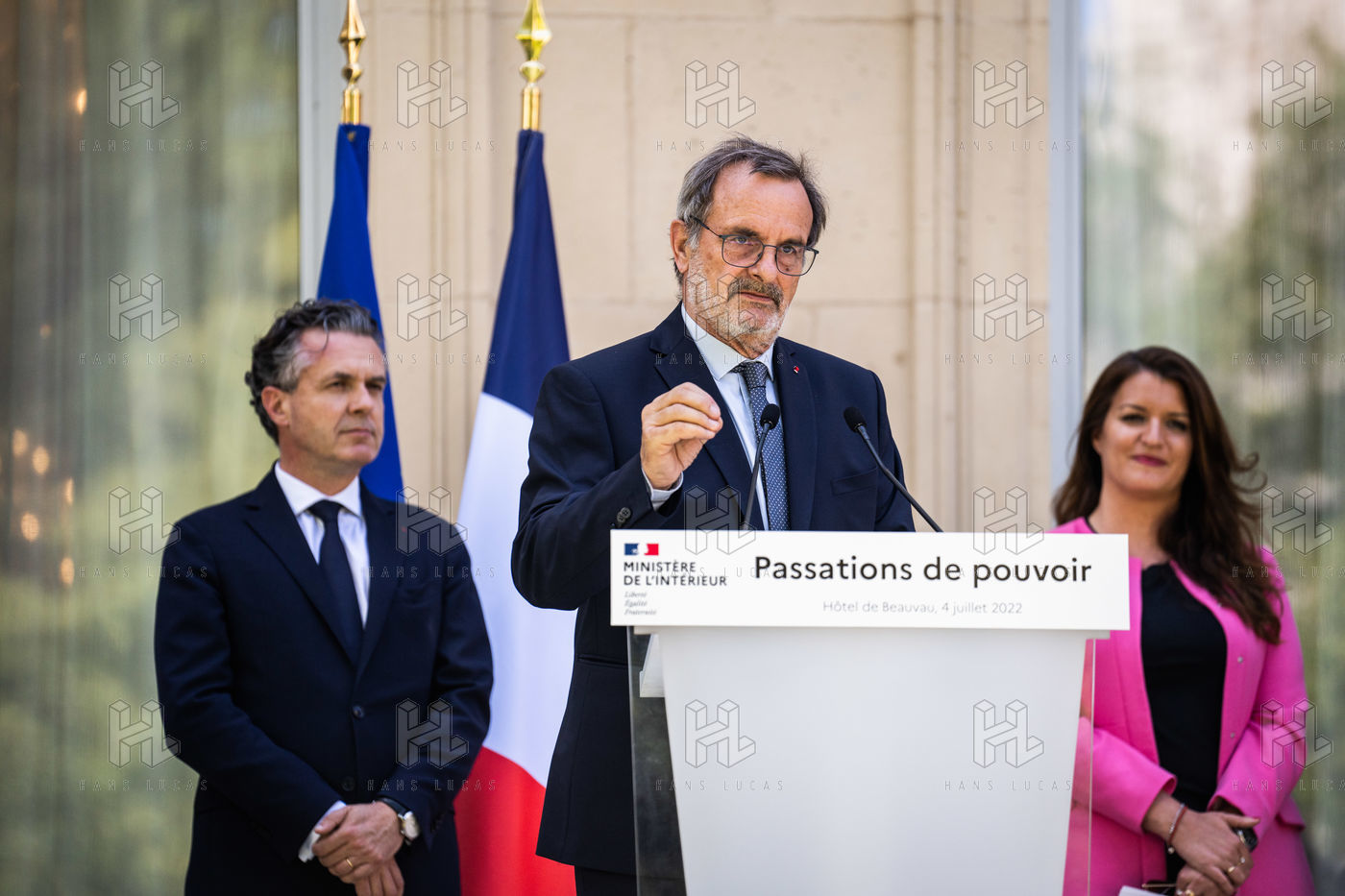 Cérémonie de passation de pouvoirs au ministère de l'Intérieur, place Beauvau. Le ministre de l'intérieur et de l'outre-mer préside la cérémonie de passation de pouvoirs, suite au remaniement gouvernemental.