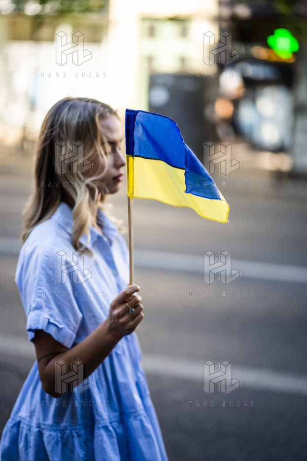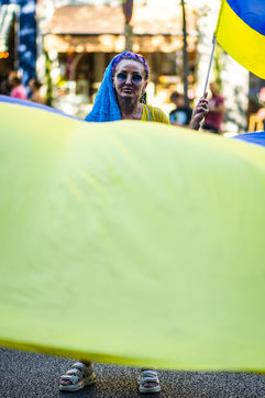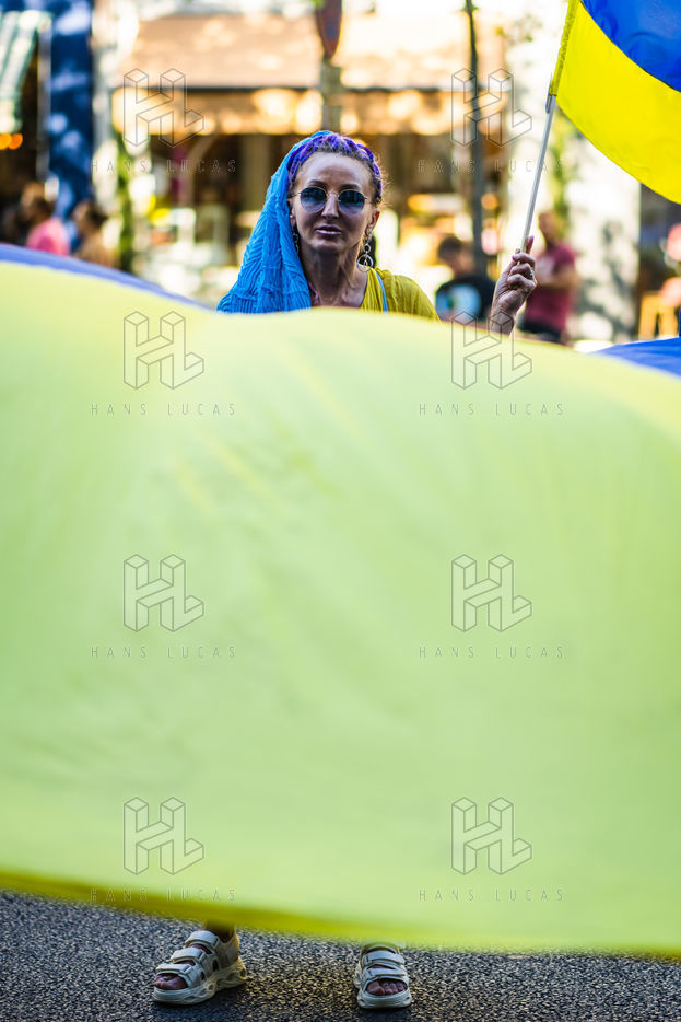 Demonstration against the Russian military invasion in Ukraine and in support of the Ukrainian people, boulevard Beaumarchais in Paris.