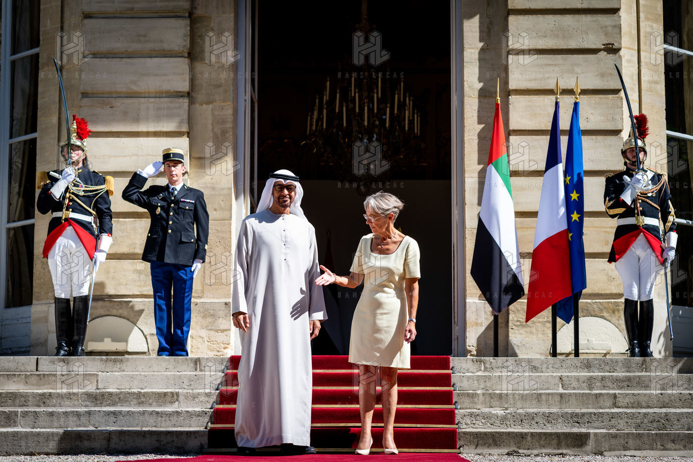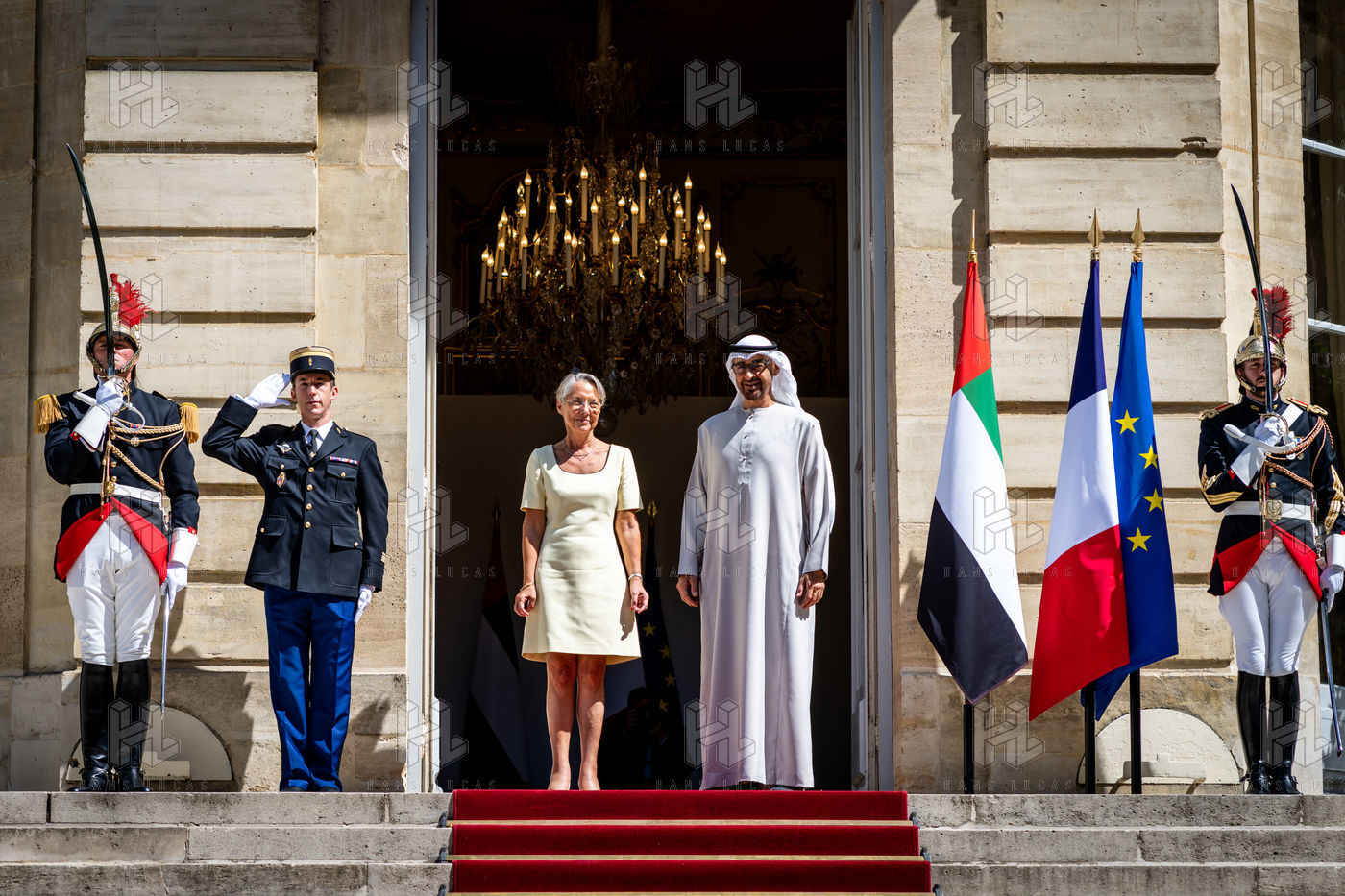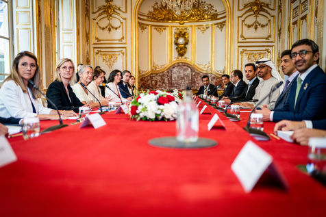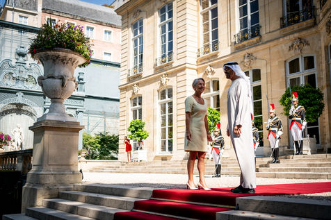 Interview of Elisabeth BORNE, Prime Minister, with Mohammed BIN ZAYED AL NAYHAN, President of the United Arab Emirates, at the Hotel de Matignon.