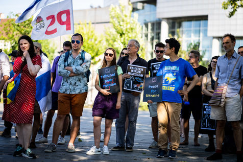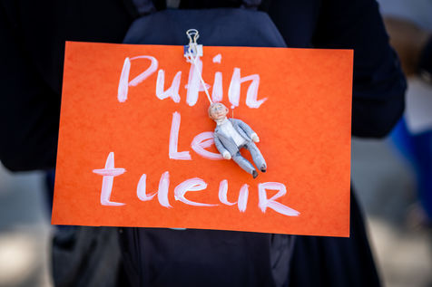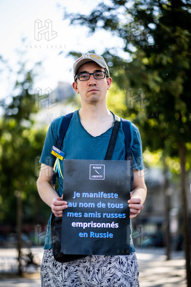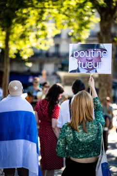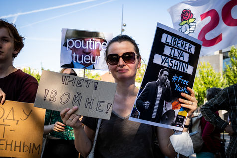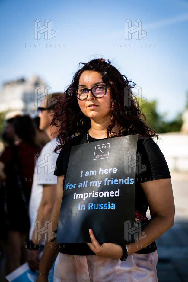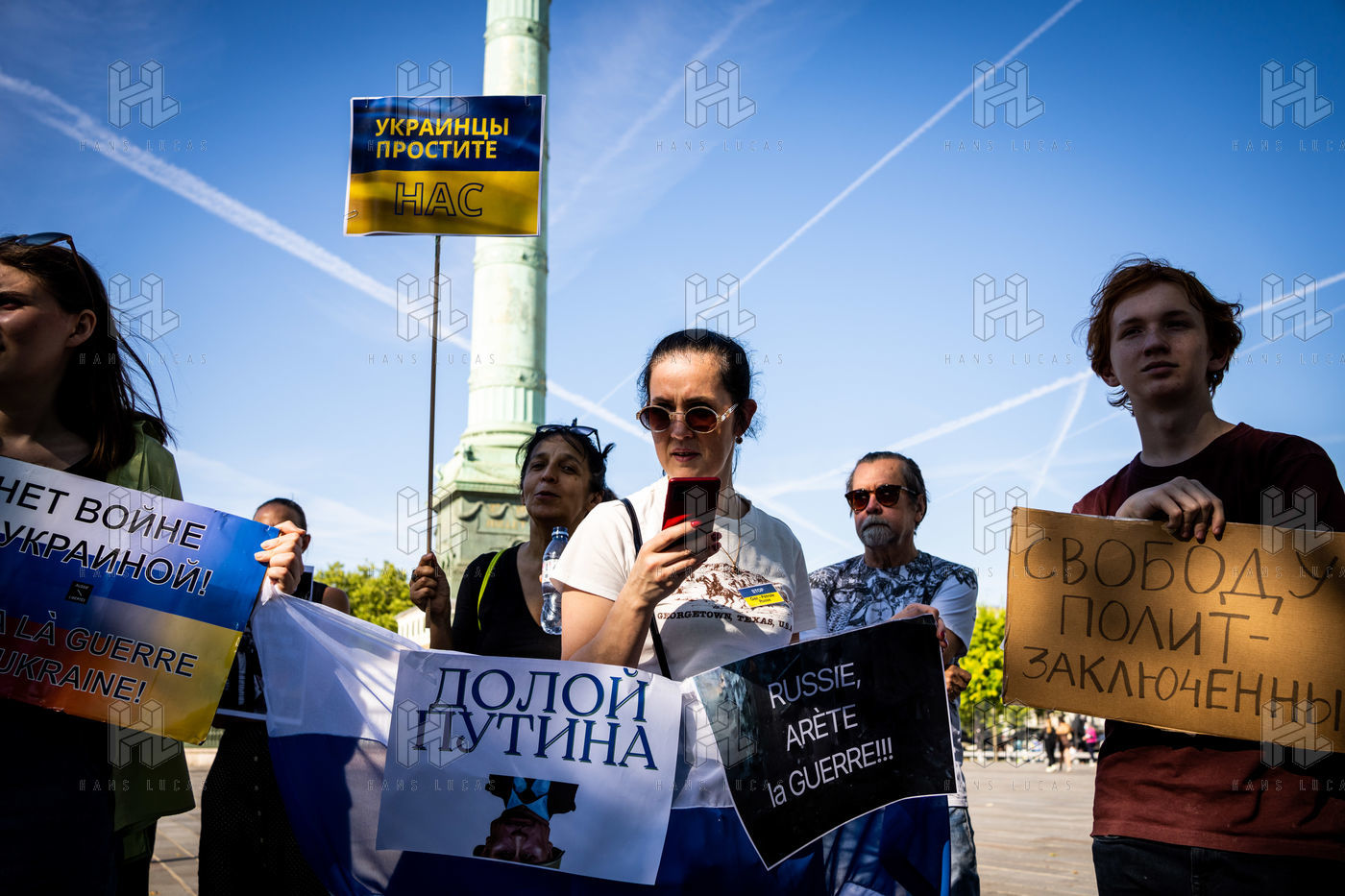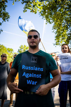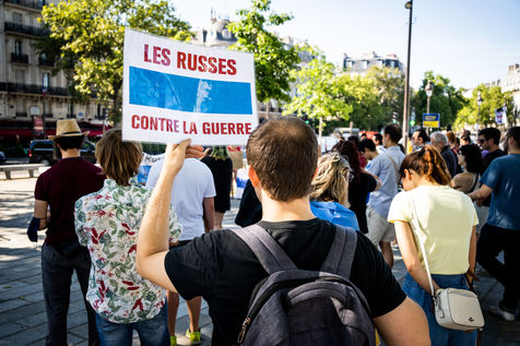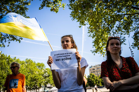 Manifestation des russes contre la guerre, contre l'agression du Kremlin contre l'Ukraine, en soutien aux Russes réprimés en Russie, sur la place de la Bastille.