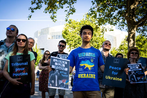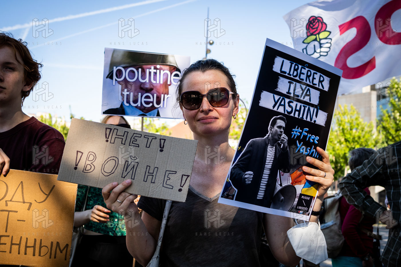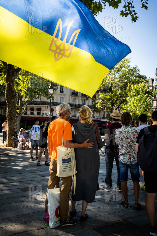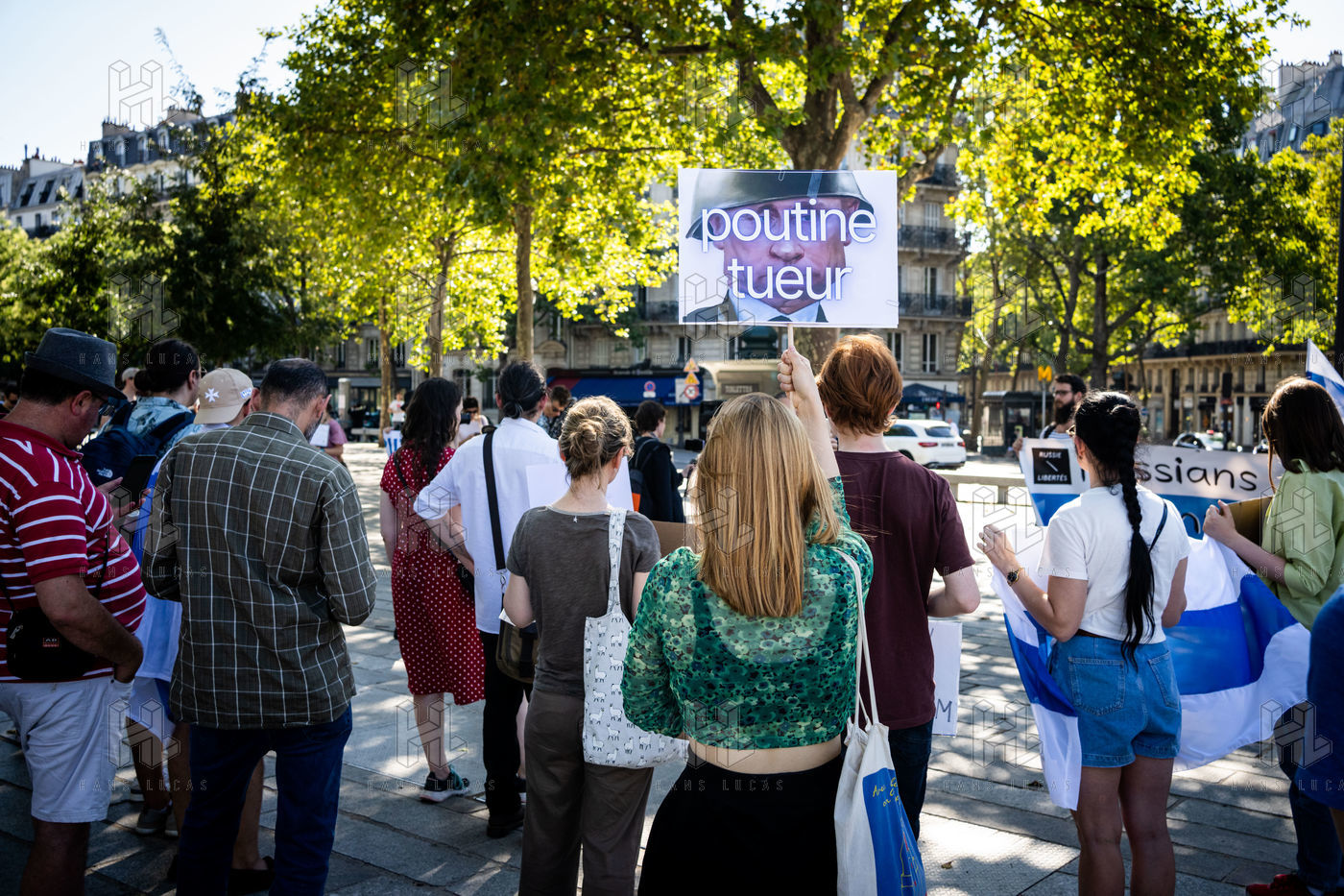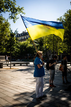 Manifestation des russes contre la guerre, contre l'agression du Kremlin contre l'Ukraine, en soutien aux Russes réprimés en Russie, sur la place de la Bastille.