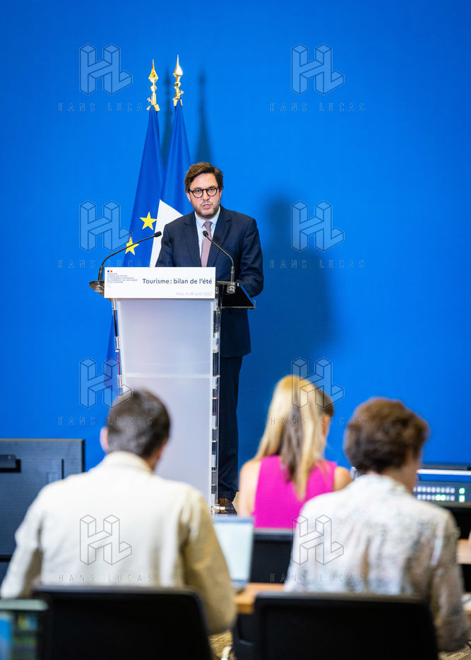Press conference on the tourism assessment of the summer period at the Ministry of Economy, Finance and Industrial and Digital Sovereignty, in Bercy.