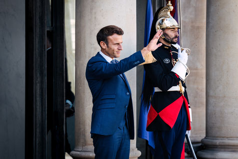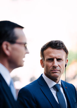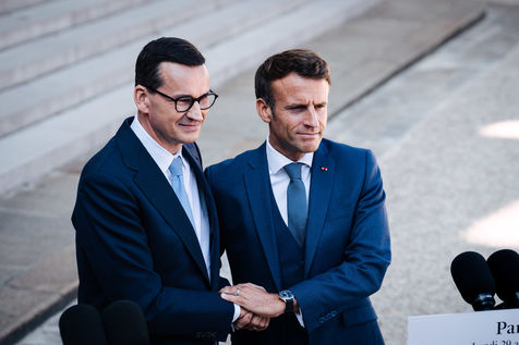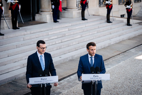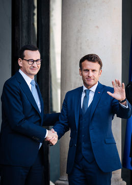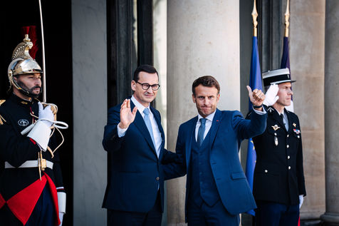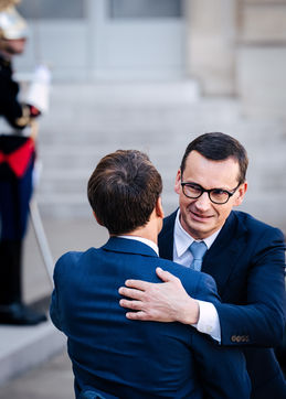 Meeting between Mateusz Morawiecki, President of the Council of Ministers of Poland, and Emmanuel Macron, President of the French Republic, at the Élysée Palace.