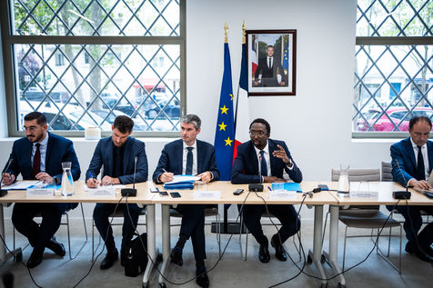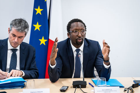 Rencontre d'Hervé Berville, secrétaire d'État auprès du Premier ministre, chargé de la mer, avec les professionnels de la pêche et les acteurs de la grande distribution, avec France filière Pêche, au ministère de la mer. Cette rencontre sera l'occasion de lancer les discussions sur un dispositif de soutien pérenne à la filière pêche française qui prendra le relais des aides publiques en place depuis mars 2022 et qui agira dans le sens de la décarbonisation du secteur.