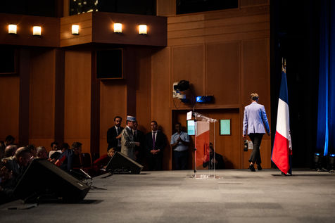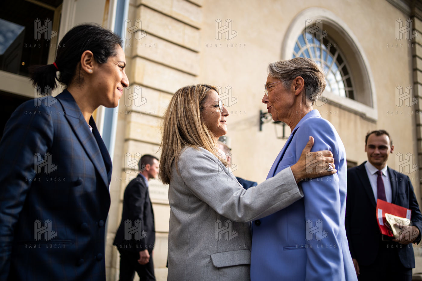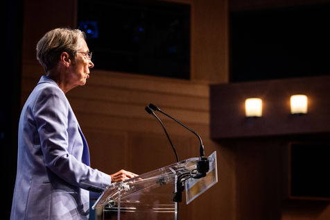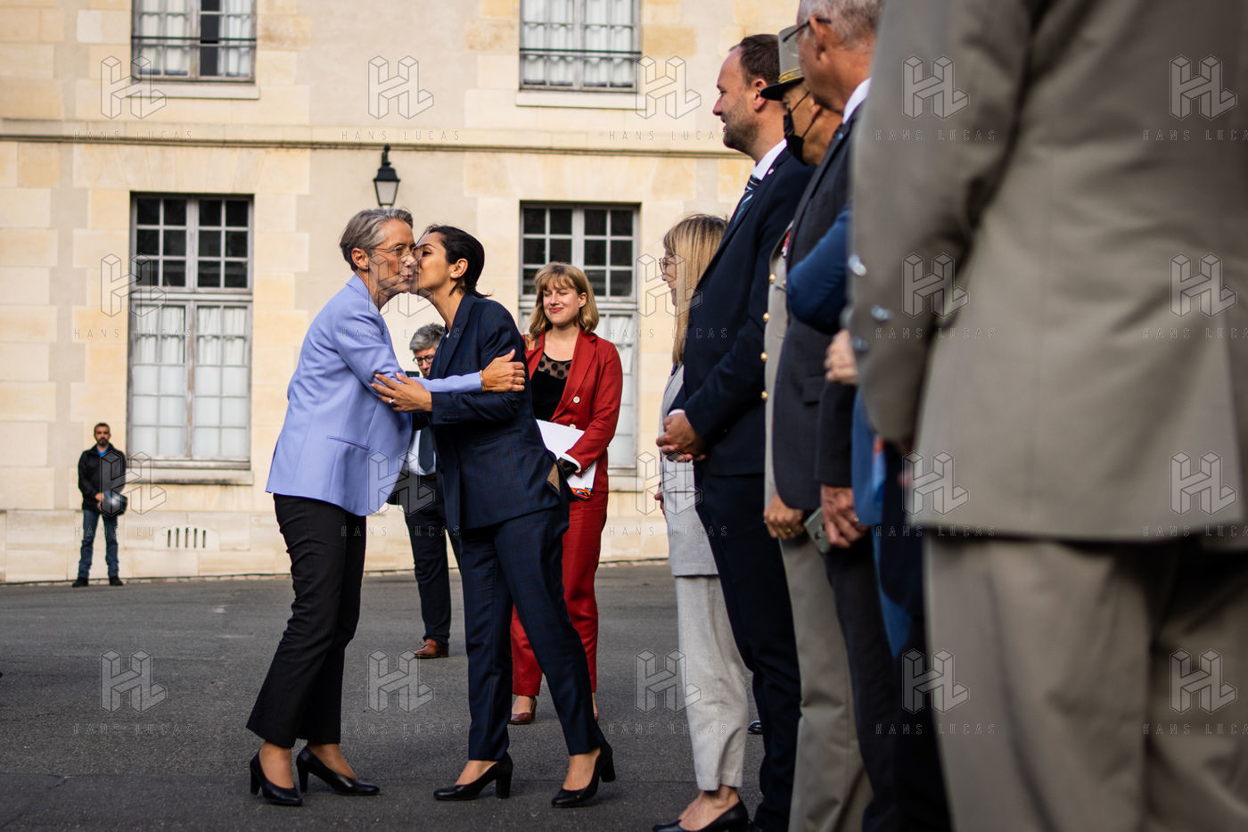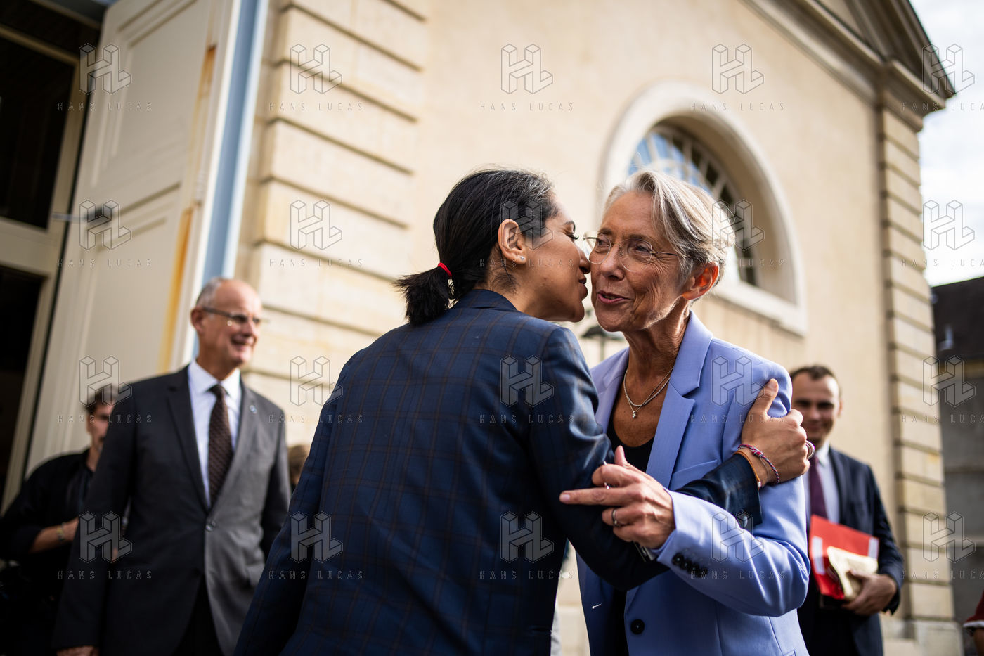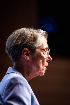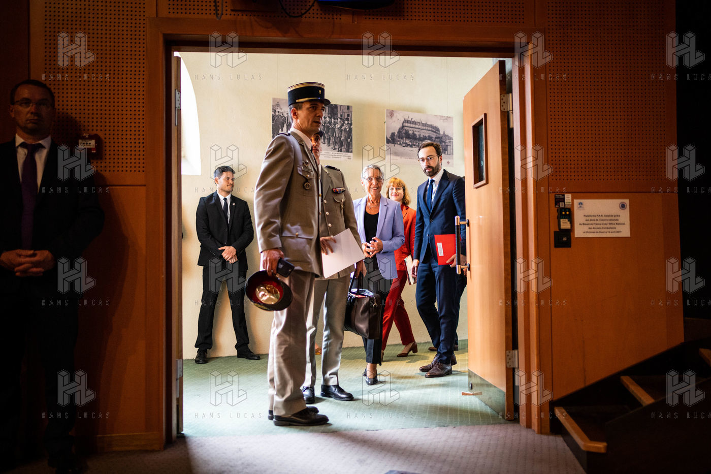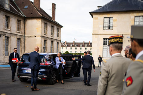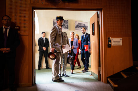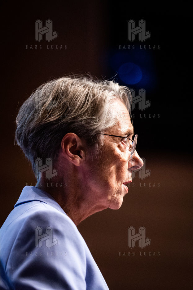 Visite d'Elisabeth Borne, Premier ministre française, à l'occasion de la leçon inaugurale du séminaire de rentrée des auditeurs de l'Institut des Hautes Etudes de la Défense Nationale (IHEDN) à l'Ecole Militaire. Le Premier ministre prononce un discours devant les membres de la session nationale.