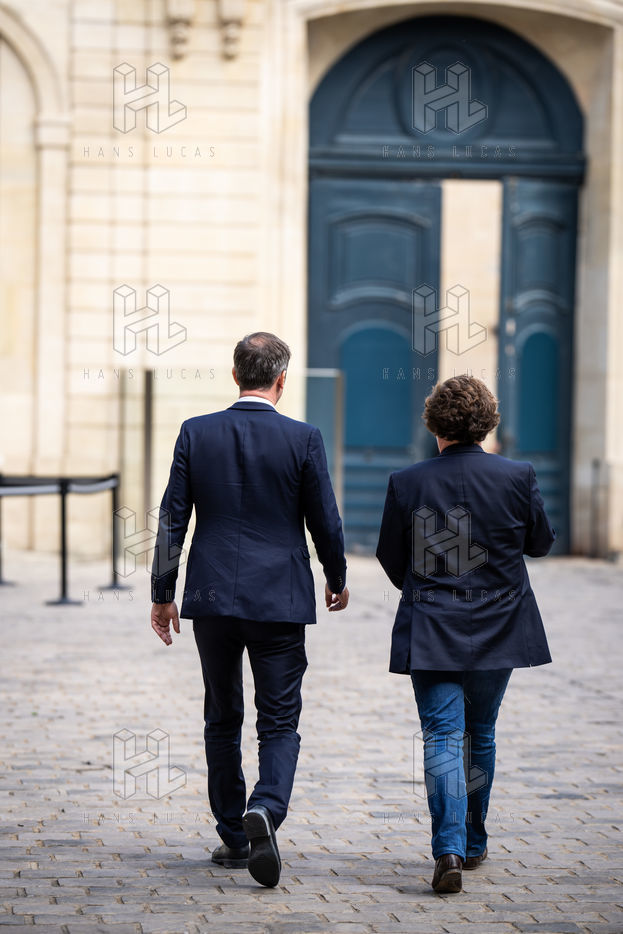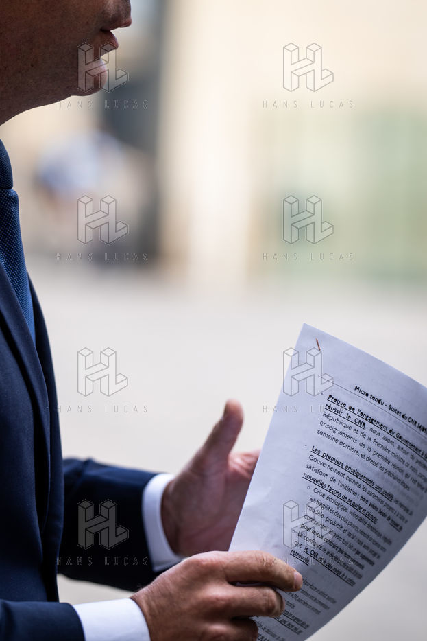 Déclaration à la presse d'Olivier Veran, ministre délégué auprès du Premier ministre, chargé du renouveau démocratique, porte-parole du gouvernement, dans la cour de l'hôtel de Matignon à l'issue de la réunion sur le CNR.