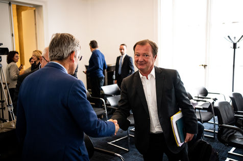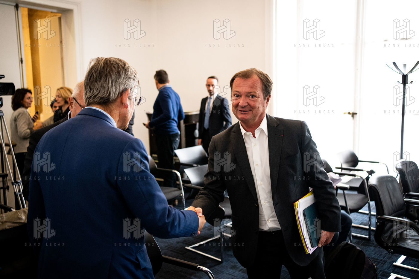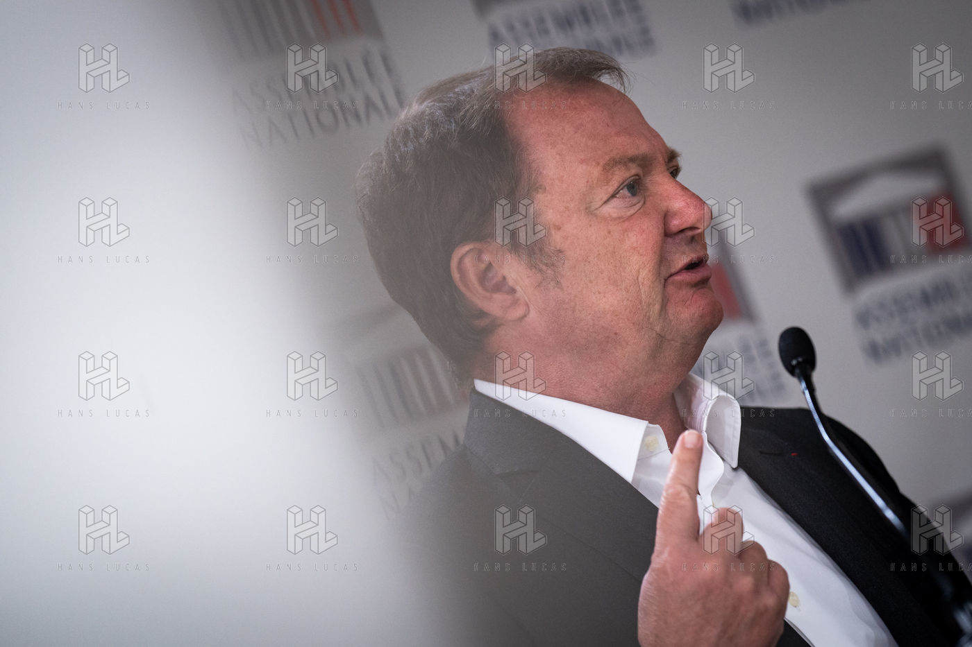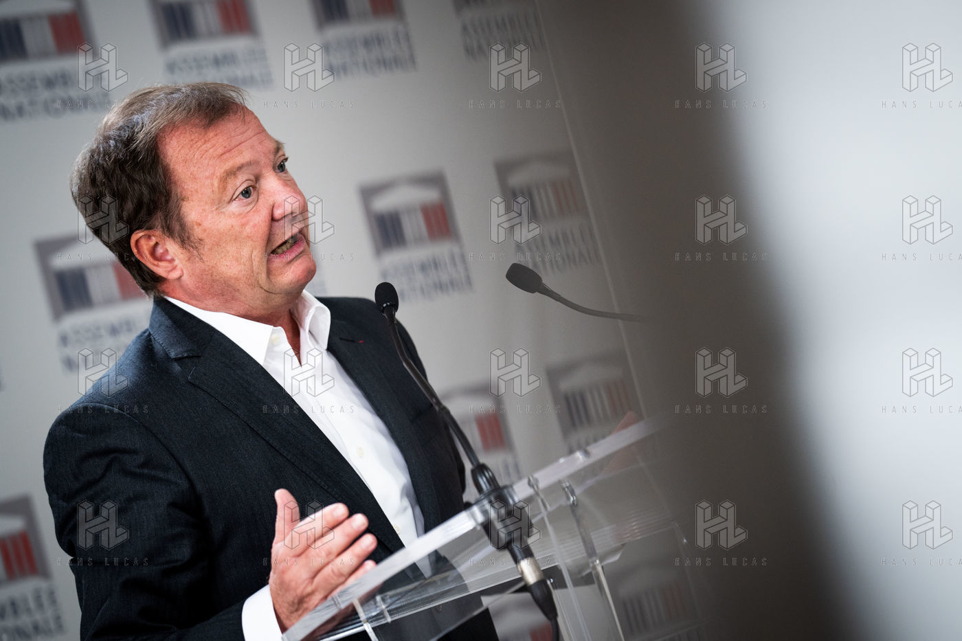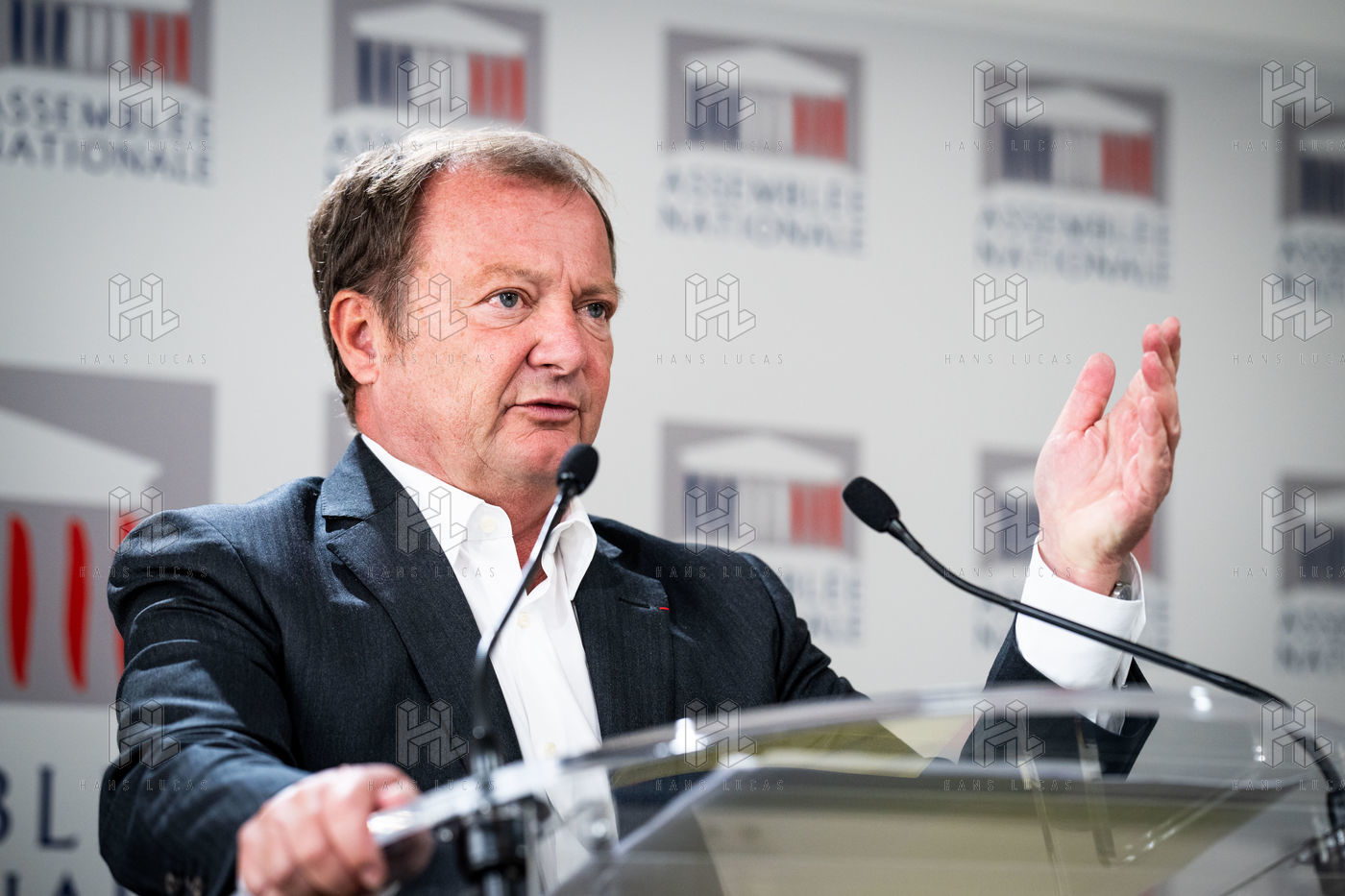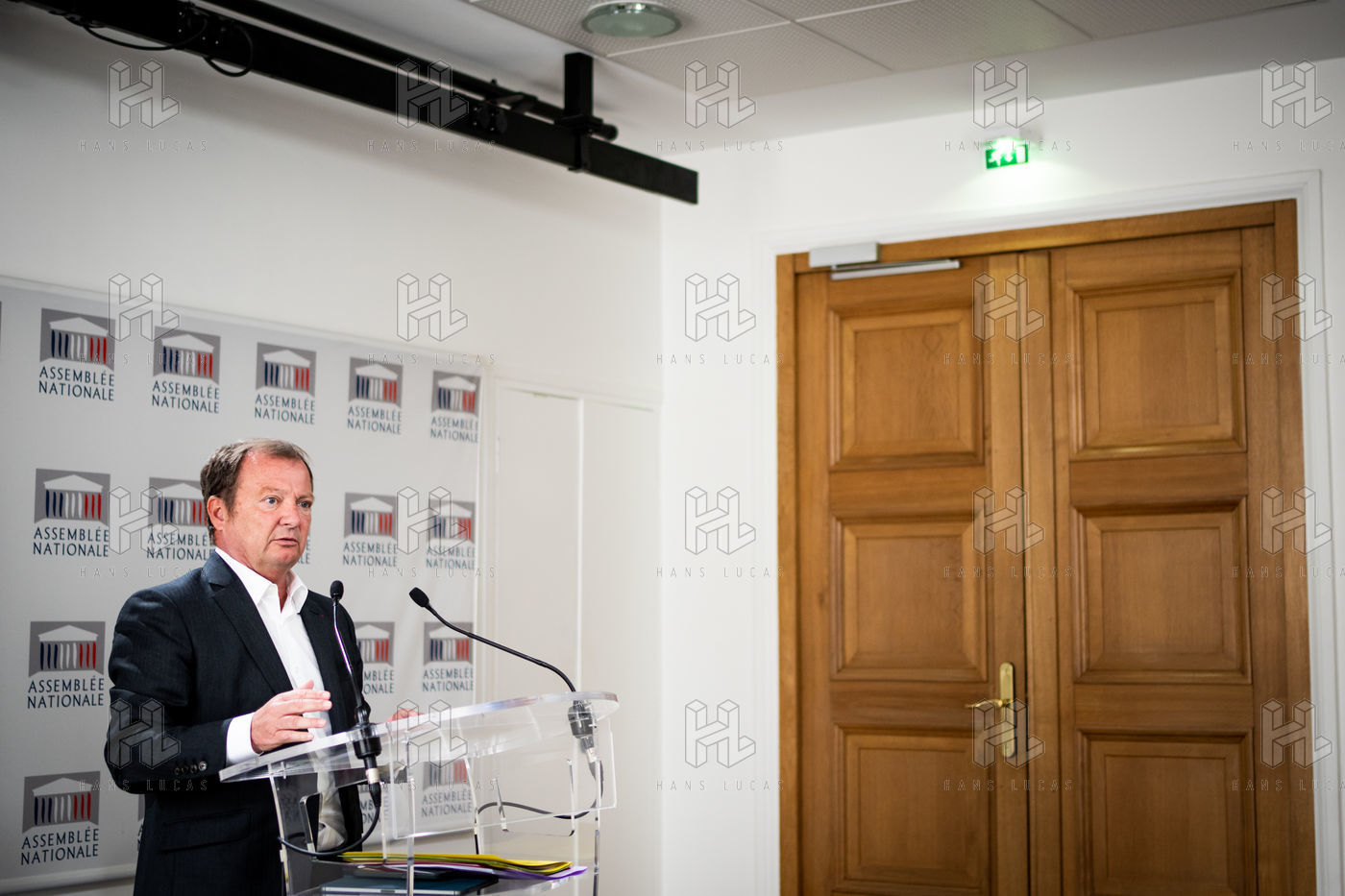 Presentation by Stéphane Peu, deputy of Seine Saint Denis of the communist party, democratic and republican left, GDR, member of the NUPES, of the bill relating to the answer to the crisis of recruitment of the teachers of the National Education, in the conference room of the National Assembly.