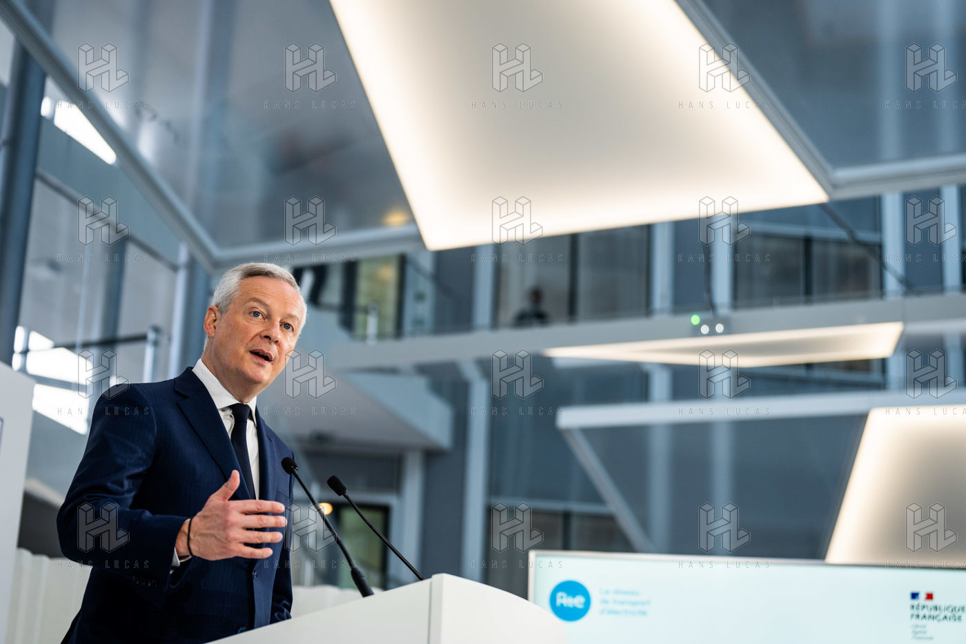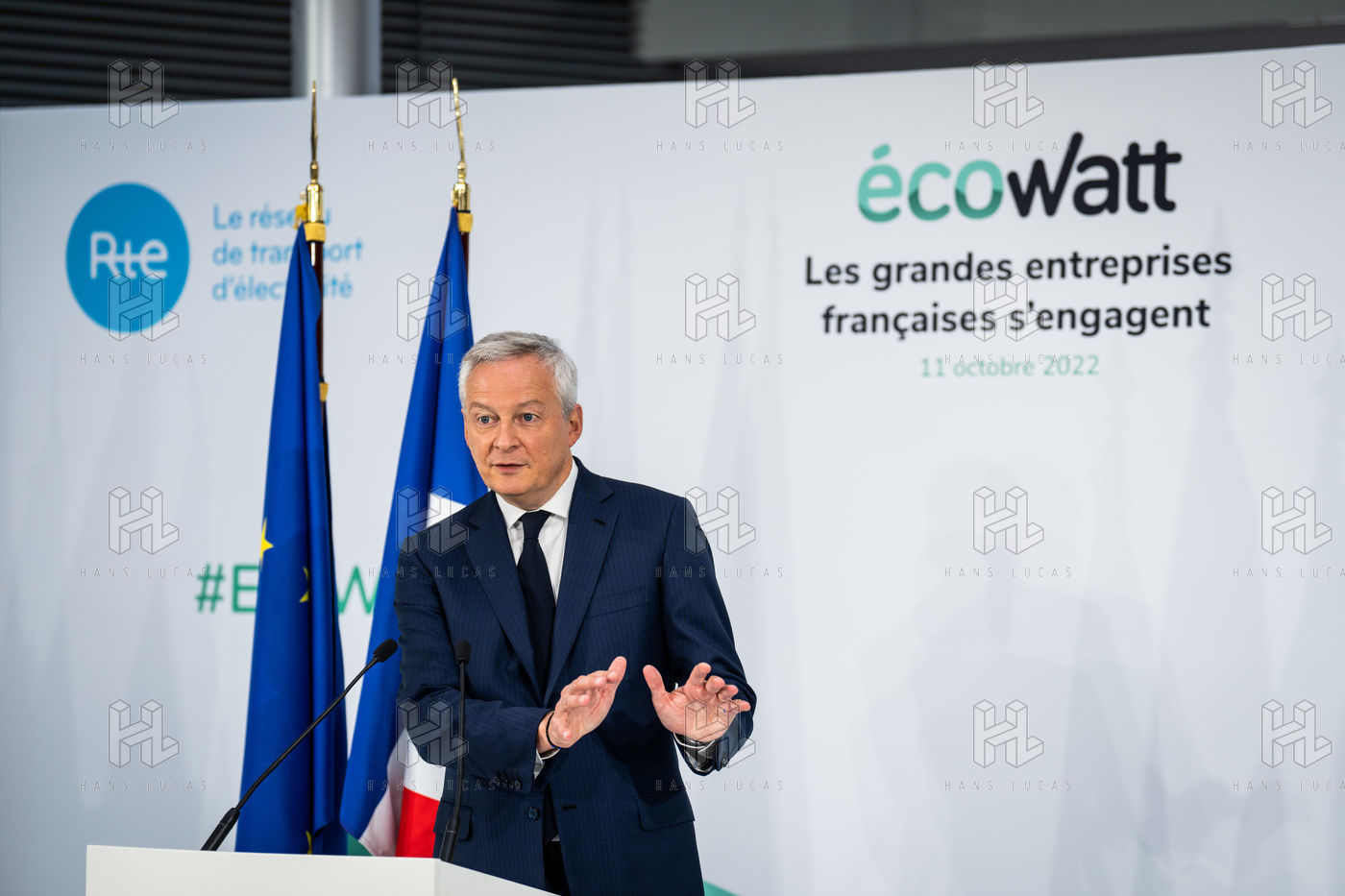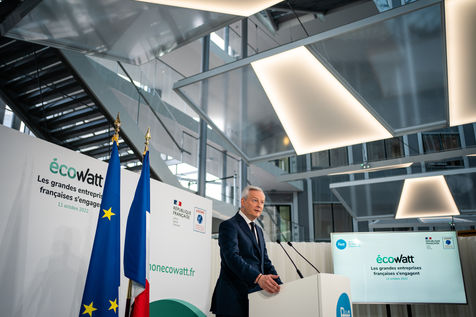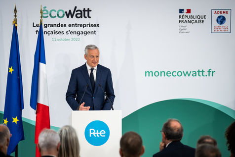 Le ministre de l'économie, des finances et de la souveraineté industrielle et numérique, participe à l'événement EcoWatt, organisé par le réseau de transport d'électricité français (RTE) au siège de RTE à La Défense.